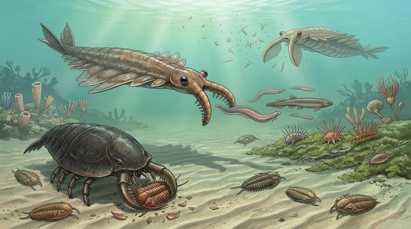 5亿年前的寒武纪海洋里,体长60厘米的奇虾曾是公认的“顶级杀手”——人们笃定它能用粗壮前肢击碎三叶虫的硬壳,在微型动物遍地的时代横行无阻。但最新研究彻底推翻了这个延续数十年的认知:奇虾根本啃不动硬壳猎物,它的“捕猎武器”另有专攻。