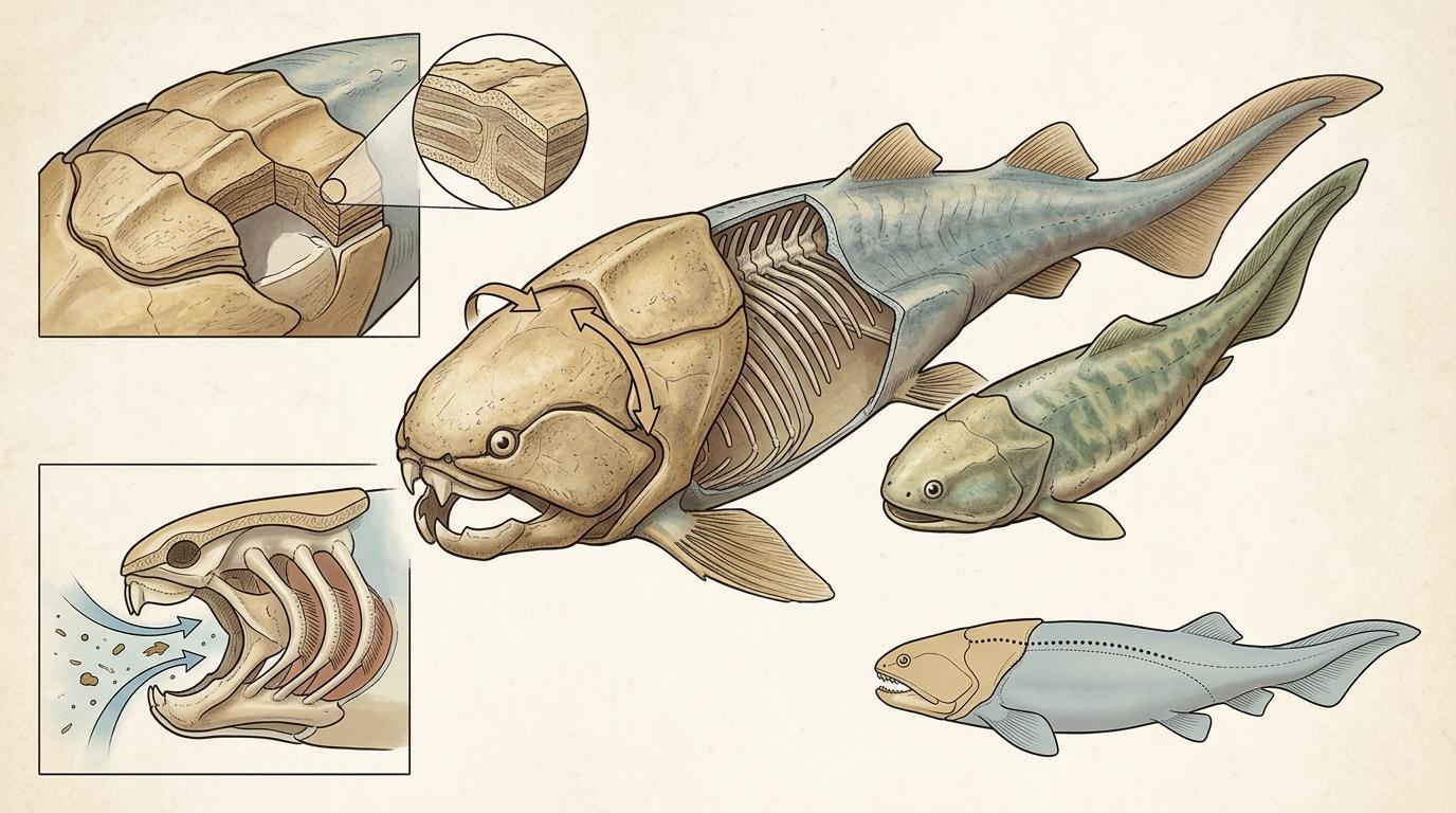 奥陶纪末的大灭绝给了甲胄鱼机会。这些披着骨质甲片的无颌鱼,在空出来的生态位里辐射演化,短短时间就变出300多种异甲鱼类和200多种骨甲鱼类。但甲胄鱼的辉煌是有天花板的:厚重的甲片让它们行动迟缓,头部和后侧身体连在一起,转头都困难;没有颌骨,就只能继续滤食底栖有机物,永远成不了主动的捕食者。