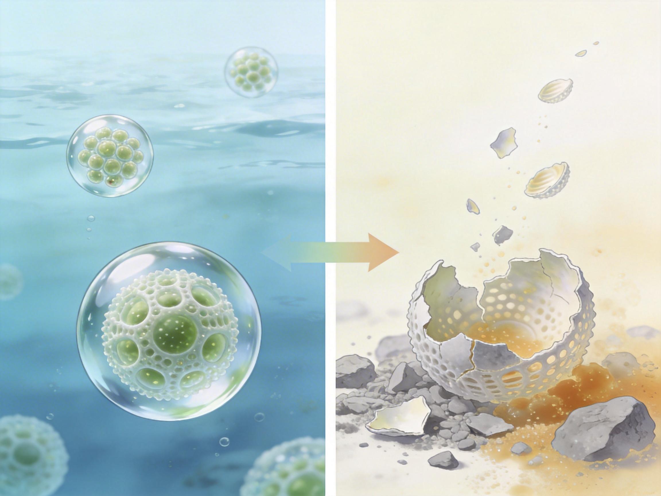 放射虫是一类靠硅质外壳生存的单细胞浮游生物——你可以把它们想象成海洋里的“玻璃小灯笼”,死后的外壳会像雪一样沉到海底,变成记录古海洋环境的“时间胶囊”。但过去研究这类微化石,科学家只能用酸把岩石溶掉,就像用开水冲掉咖啡渣找里面的糖块,脆弱的化石要么被酸腐蚀,要么在冲洗中流失。