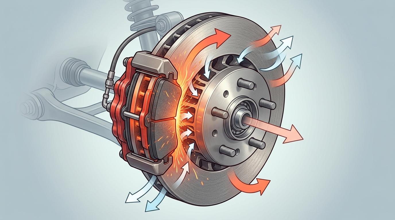 你可以把刹车盘想象成家里炒菜的铁锅——越厚的锅,越不容易烧变形,也能扛住大火爆炒的高温。刹车盘的原理一模一样:车辆刹车时,刹车片夹住刹车盘,把百公里时速的动能全部转化为热能,薄盘的热容量小,温度会瞬间飙升,轻则出现刹车抖动,重则直接引发“热衰退”——制动力突然下降,甚至完全失灵。