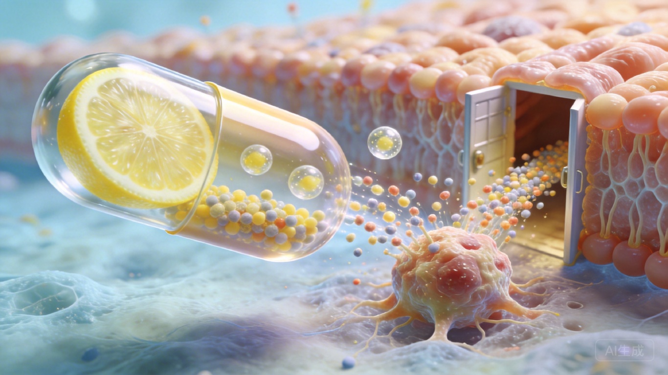 但南方医科大学的团队干了件“反常识”的事:他们给抗癌药卡培他滨装了个用柠檬细胞外囊泡做的“大胶囊”,不仅没想着偷偷“钻”过屏障,反而故意用尺寸“撞开”它的门。结果是,肿瘤里的药物浓度直接翻了13倍——这不是偷偷溜进去,是请开了一扇临时的门。