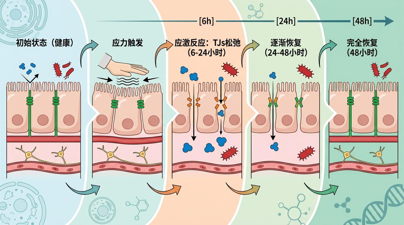 实验数据显示,机械应力触发的细胞应激反应,会在接触后的6到24小时内让紧密连接暂时松弛,48小时后又会完全恢复——既给药物打开了足够宽的通道,又不会让肠道长时间处于“无防护”状态,避免了细菌、毒素趁机入侵的风险。