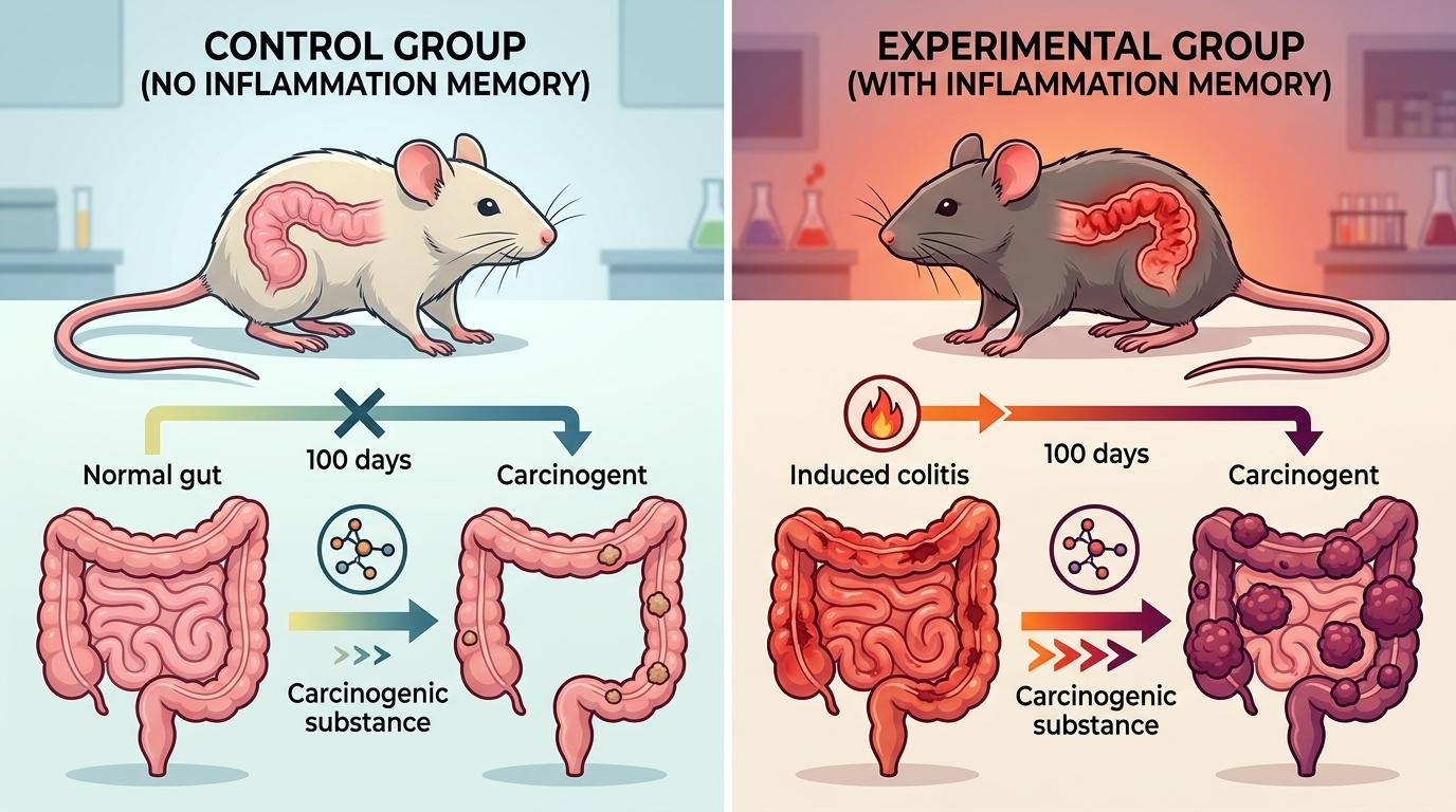 但哈佛医学院Jason D. Buenrostro团队的研究,却揭开了它危险的一面。他们给小鼠诱导结肠炎,等炎症完全消退100天后,再给小鼠注射致癌物质——结果有炎症记忆的小鼠,肿瘤生长速度比没有记忆的小鼠快了两倍。