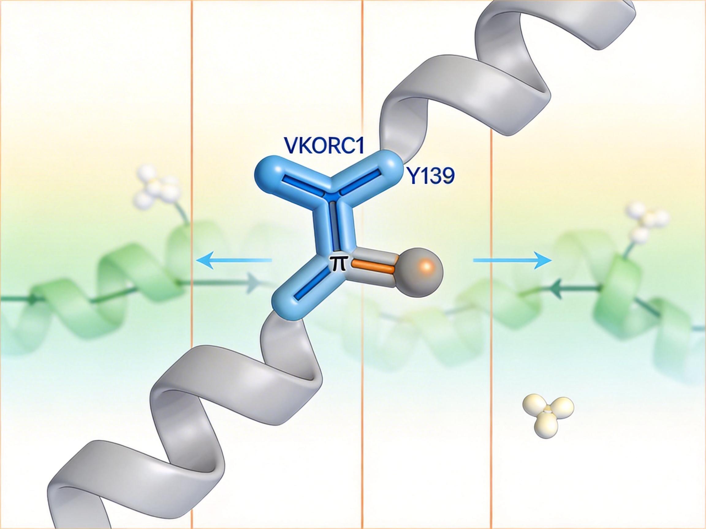 它会和VKORC1的Y139氨基酸残基形成稳定的「T型π-π堆积」,就像一把钥匙插进锁孔,直接阻断维生素K的循环再生。没有足够的维生素K,新的凝血因子拿不到通行证,血液的凝固能力自然下降。