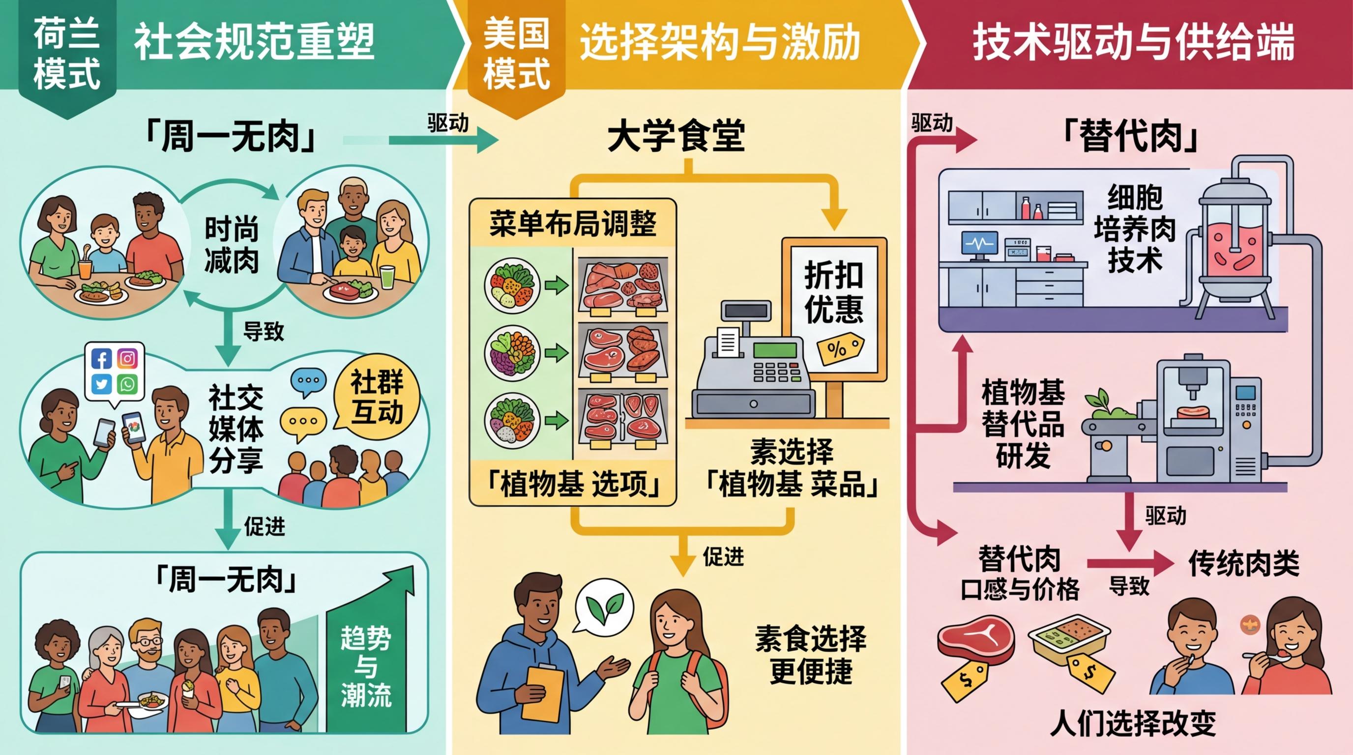 更关键的是,肉类消费是一种习惯性行为。我们每天吃什么,90%以上是无意识的习惯驱动,而非理性选择。心理干预试图用理性说服改变本能习惯,本身就是南辕北辙。
