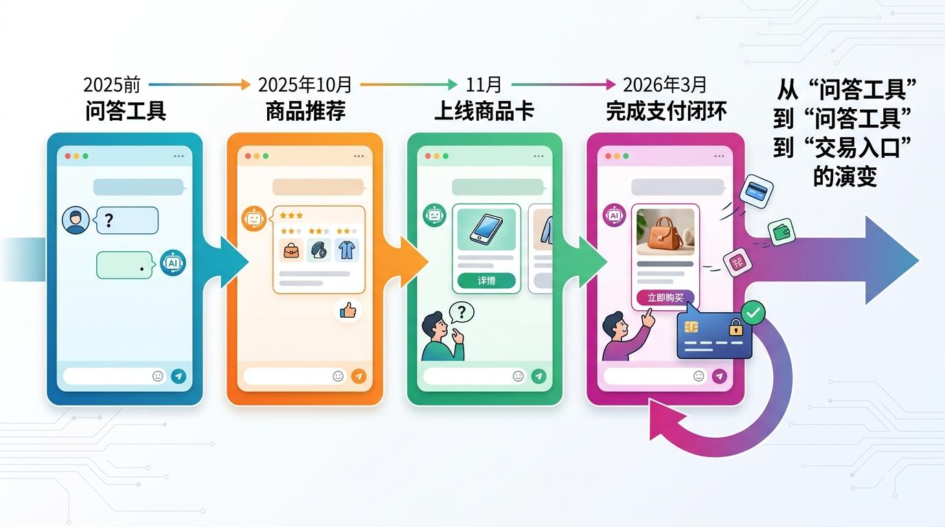 字节的布局其实早有伏笔:2025年10月开始做商品推荐,11月上线商品卡,2026年3月完成支付闭环——每一步都在把“对话”这个动作,从“问答工具”变成“交易入口”。