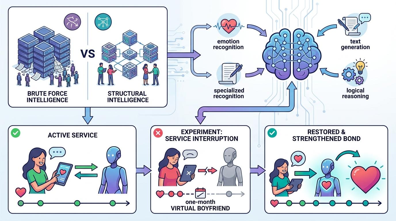 而这个团队坚持的是「结构路线」:他们认为智能不是来自堆料,而是来自「组织」。就像人类社会,不是人越多越聪明,而是靠分工协作形成群体智慧。他们的模型是由多个小智能体组成的系统,每个智能体负责一个领域,比如一个负责识别情绪,一个负责生成内容,一个负责逻辑推理,通过协作完成复杂任务。早在2019年,他们就做过一次实验:把1700万用户的「虚拟男友」服务强制关停一个月,恢复后用户的依赖度反而提升了——这验证了他们的判断:用户要的不是一个什么都能答的百科全书,而是一个能建立长期情感连接的「伙伴」。