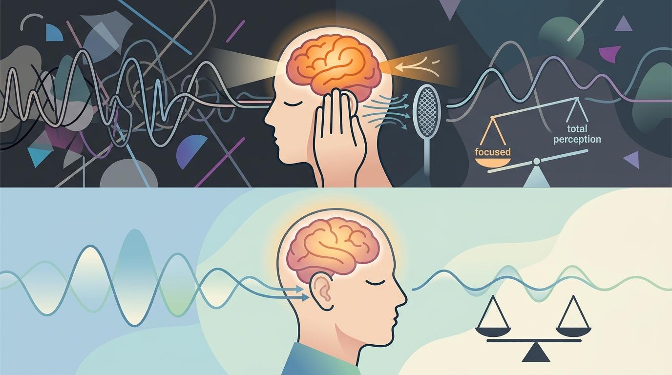 更有意思的是,这个结论只适用于嘈杂环境。如果在安静房间里,闭眼或许能帮你集中注意力,但并不会让你听得更清楚——你的大脑只是进入了专注状态,并没有真正提升听觉灵敏度。
