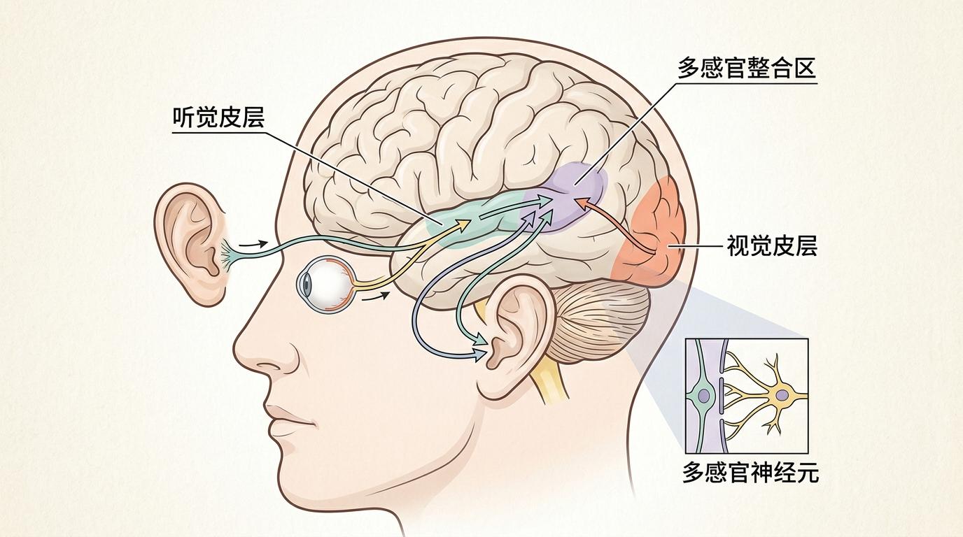 其实我们的大脑从出生起就习惯了「用眼睛帮忙听」。婴儿会盯着说话人的嘴部,借助口型的开合理解语音;听障人士能通过唇读补全听觉缺失的信息。这不是感官的额外辅助,而是大脑最自然的工作方式:多感官的协同,才是我们在复杂世界里精准捕捉信息的核心。