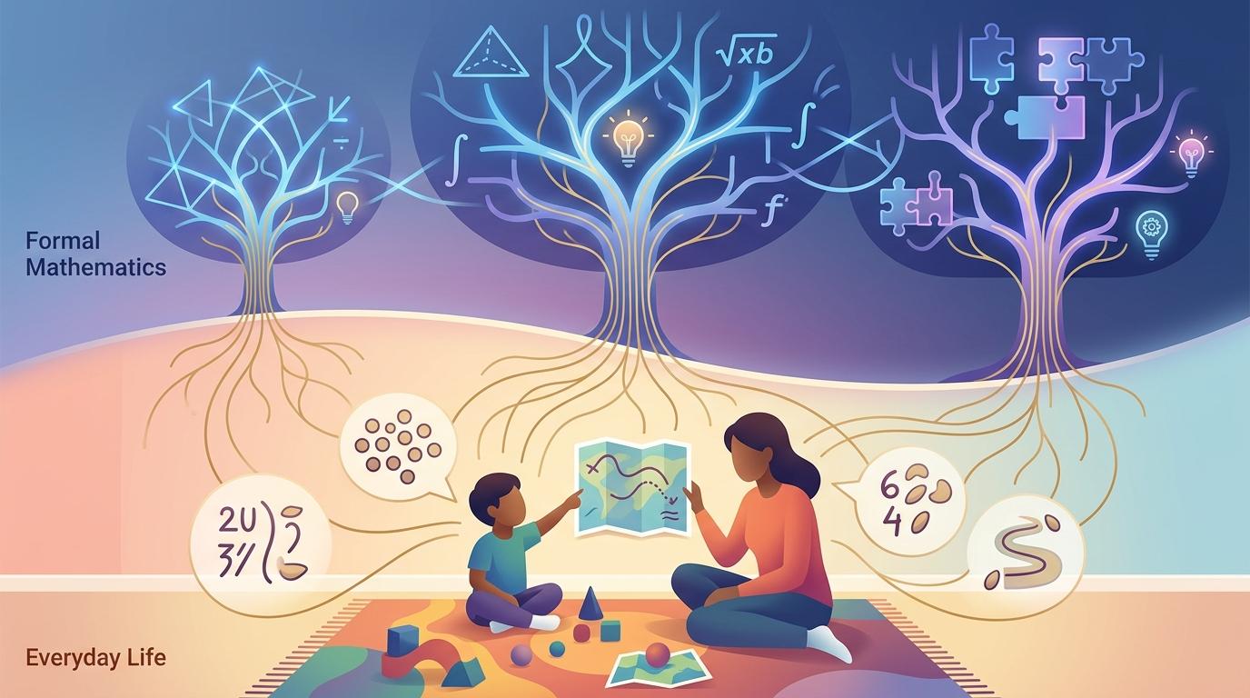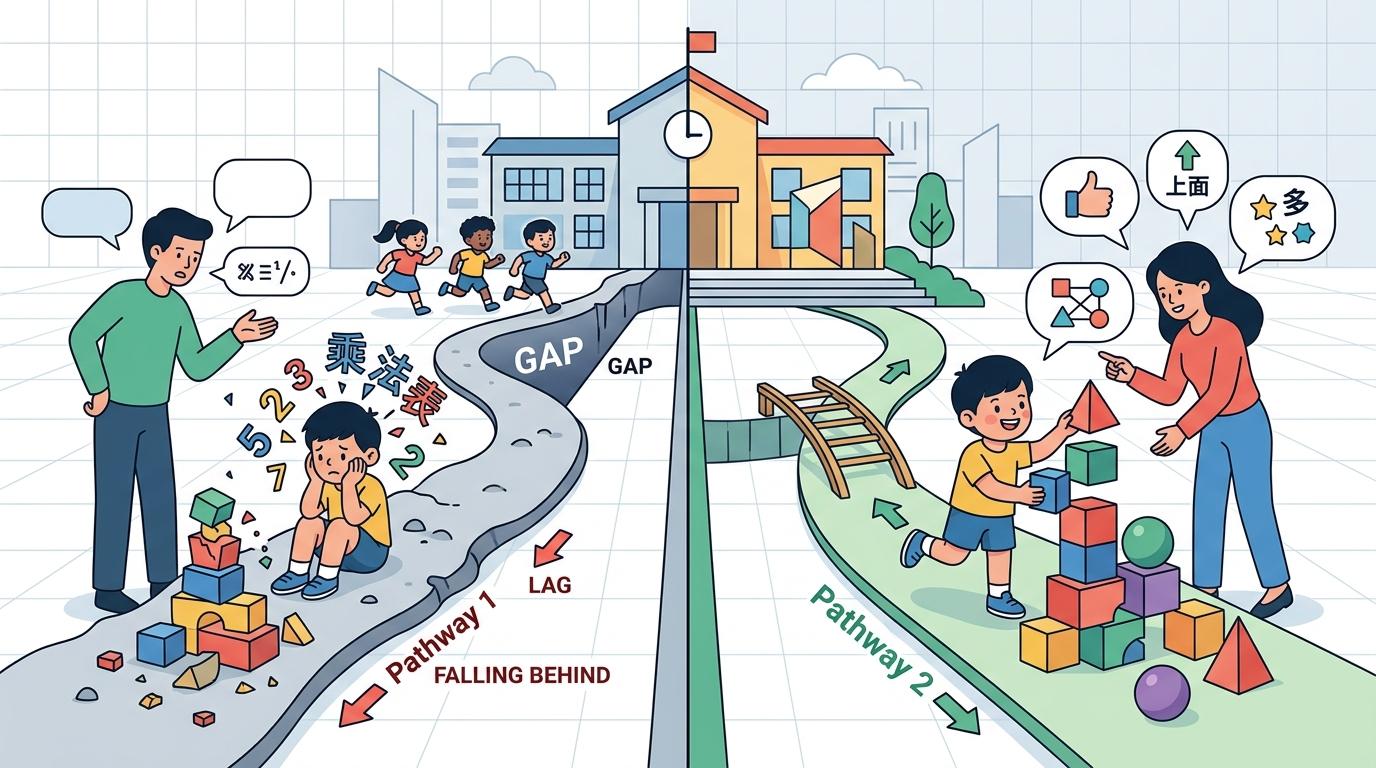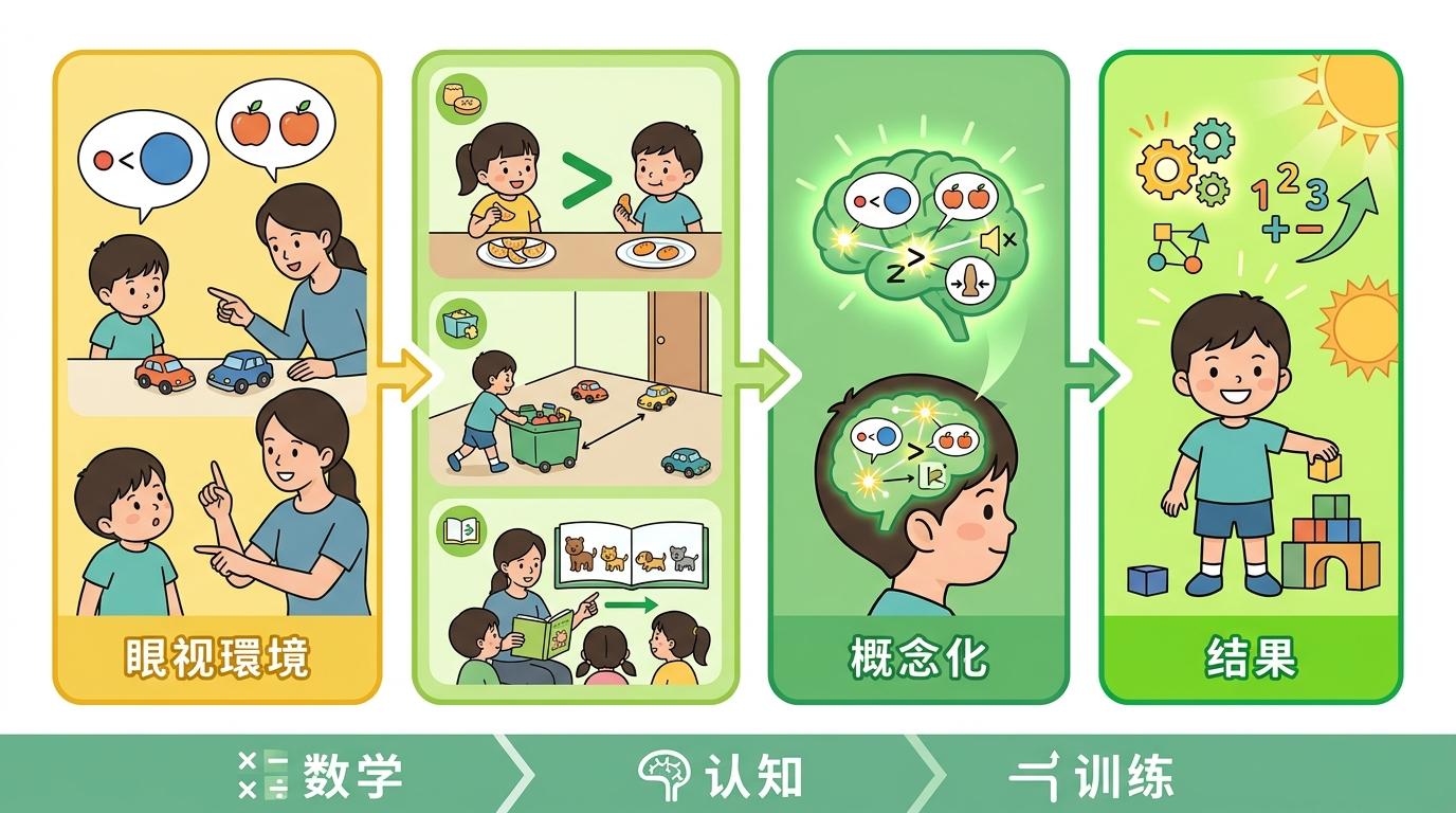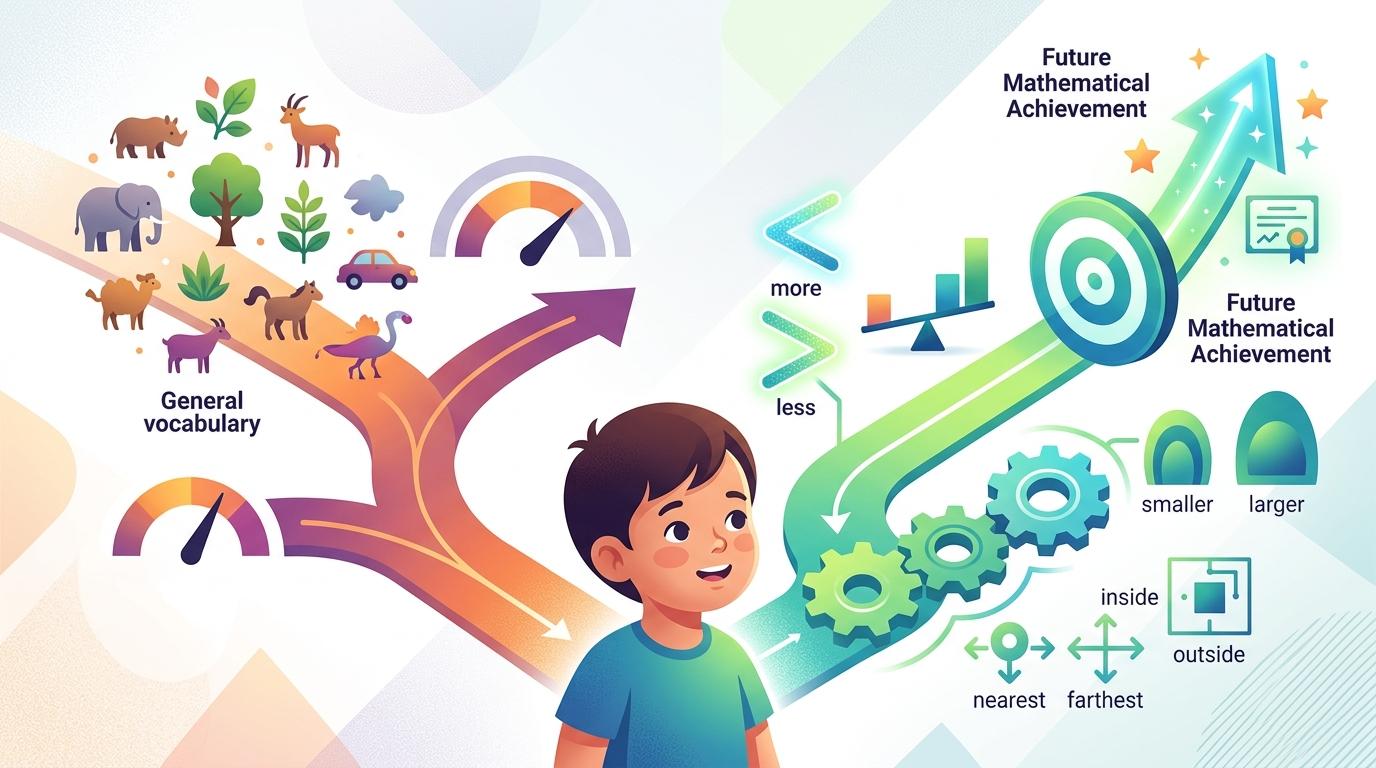 我们总把早期数学等同于认数字、学数数,可近年的研究却推翻了这个常识。针对3到5岁儿童的跟踪研究显示,比起普通词汇量,数学语言——也就是描述数量关系和空间位置的专门词汇——才是预测孩子未来数学成绩的核心指标。就算一个孩子能说出上百种动物名称,要是不会用“更多”“最近”这类词,依然可能在数学学习上栽跟头。