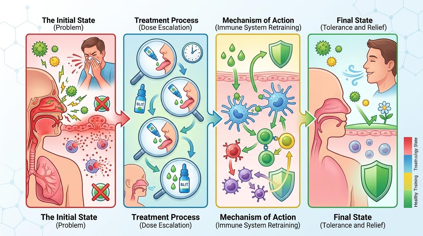 新版指南里最值得关注的,是把「免疫治疗」提到了更重要的位置——这是目前唯一能「改变疾病进程」的方法,通过逐渐增加过敏原的接触剂量,让免疫系统慢慢「习惯」这些物质,最终实现「免疫耐受」。比如舌下免疫治疗,只要每天含服一小滴过敏原滴剂,坚持2-3年,就能让花粉症患者在来年花粉季不再发作。