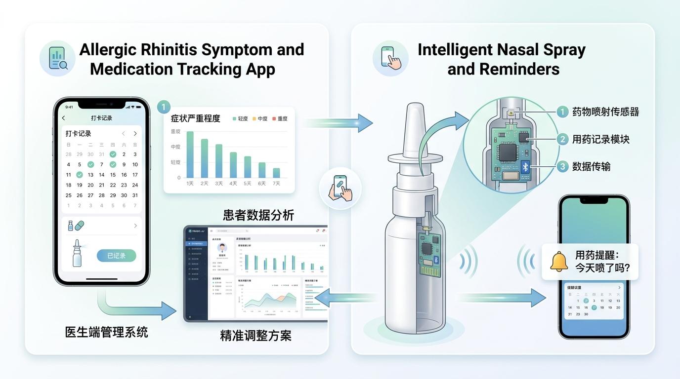 而数字医疗正在让鼻炎管理变得更简单:像MASK-air这样的APP,能让患者每天记录症状和用药情况,生成的可视化数据能帮医生精准调整治疗方案;还有的智能鼻喷,能自动记录用药时间和剂量,提醒患者按时用药,解决了「忘记喷药」这个最大的依从性问题。