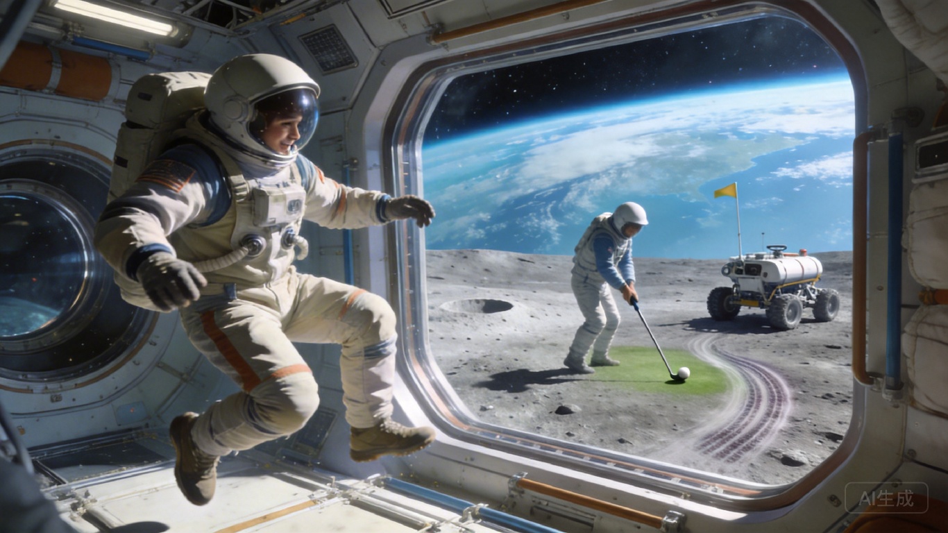 半个多世纪前的阿波罗17号宇航员更直接,他们在月球表面蹦跳着篡改老歌歌词,把十二月唱成五月,直到休斯顿的声音打断:“伙计们,今天是十二月,回归任务。”可玩闹哪是那么容易被按下暂停键的。就像阿波罗14号的艾伦·谢泼德,偷偷把高尔夫球杆带上月球,在六分之一重力里挥出两杆——那短短几十码的击球,成了太空史上最鲜活的“不务正业”瞬间。这些即兴的、甚至有点调皮的时刻,早已经超越了娱乐本身。