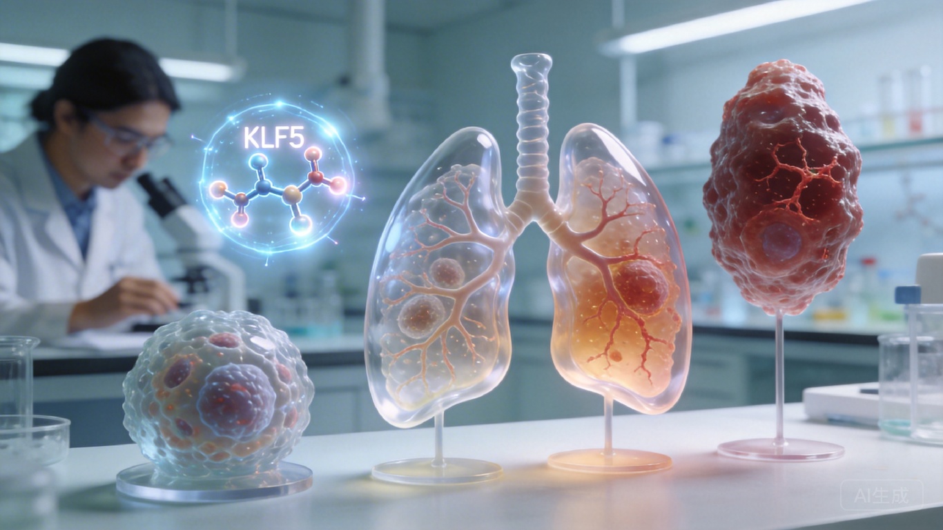 你可能不知道,每五个肺癌患者里就有一个得的是肺鳞状细胞癌——这种癌症不仅难发现,还几乎没有针对性的靶向药,5年生存率不到15%。但最近,复旦大学和粤港澳大湾区精准医学研究院的团队,在一团实验室里培育的「微型肺器官」里,抓住了驱动这种癌变的核心黑手:一种叫KLF5的转录因子。它就像藏在正常气道上皮里的卧底,一旦被激活,会一步步把健康细胞改造成疯狂增殖的癌细胞。更关键的是,研究者还找到了它的致命弱点。