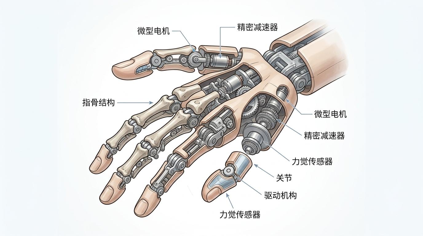 高自由度灵巧手的难,藏在每一个毫米级的细节里。人手有27块骨头、30多个关节,要复刻这份灵活,需要微型电机、精密减速器、力觉传感器等一系列核心部件,任何一个环节依赖进口,都会被卡住成本和产能的脖子。
