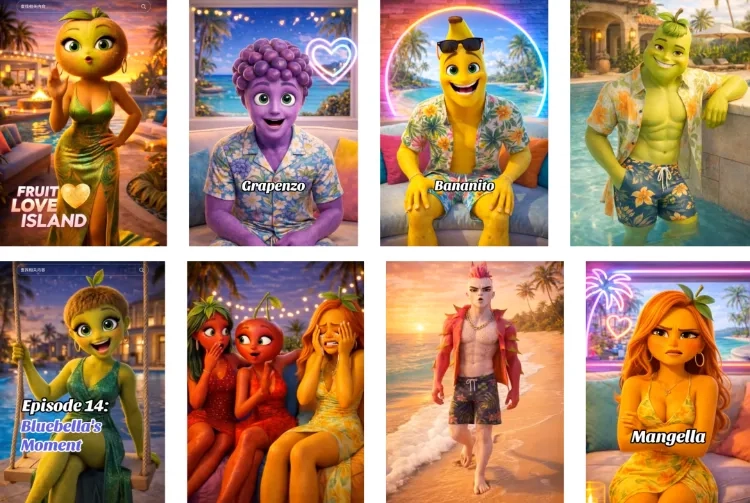 当英国老牌恋综《爱情岛》的真人明星都在追更AI生成的水果版衍生剧时,内容产业的游戏规则已经悄悄改写。TikTok上的《水果爱情岛》用9天19集、3亿播放量的数据证明:观众愿意为粗糙但抓马的AI内容买单,技术瑕疵不再是内容走红的绊脚石。这档像素级复刻真人恋综设定的短剧,把俊男靓女换成水果脑袋,却靠狗血剧情和观众共创,让用户从旁观者变成了剧情的参与者。