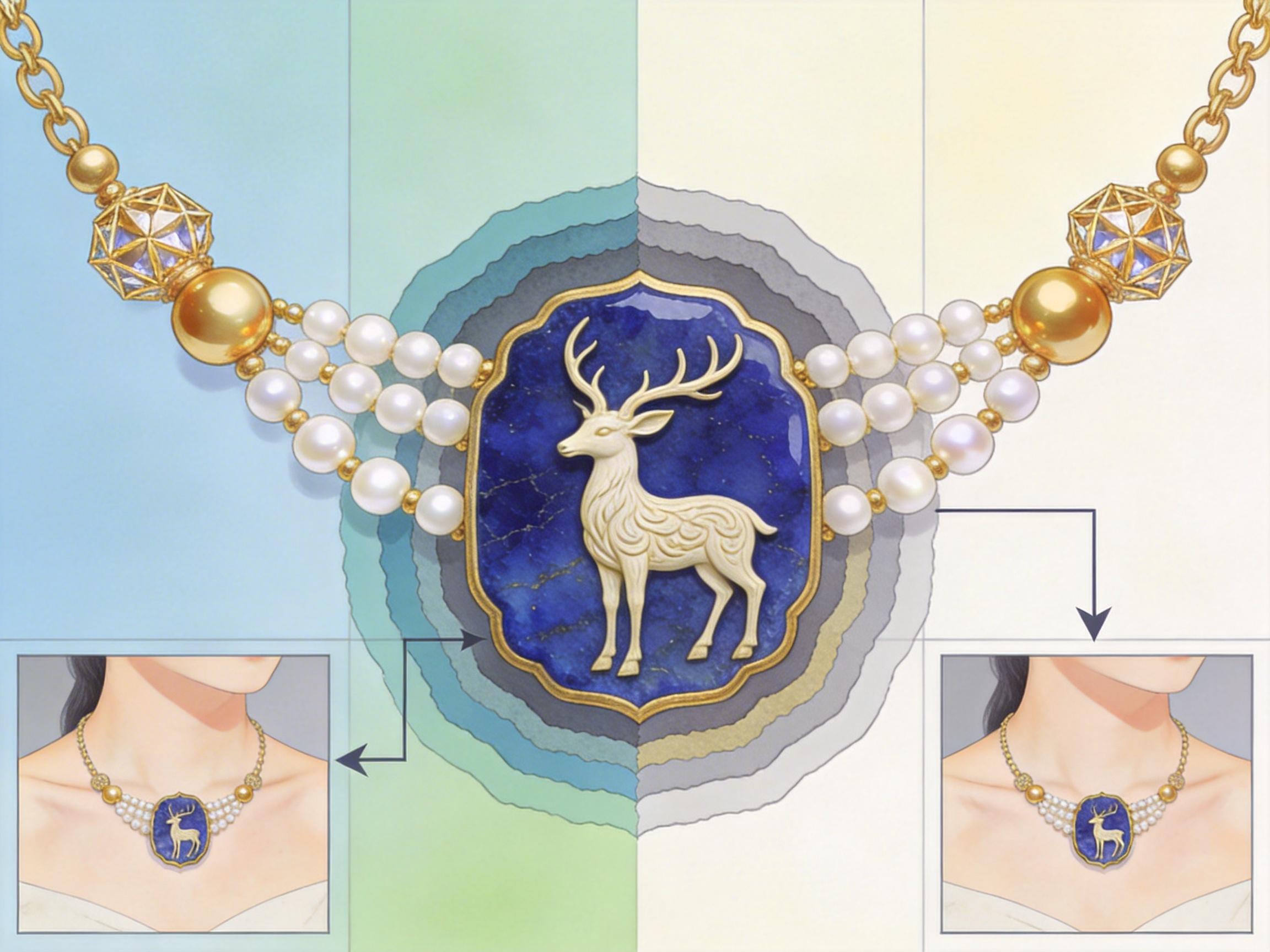 李静训墓里最引人瞩目的,是那条挂在她颈间的嵌珍珠宝石金项链——蓝色青金石上刻着一头长角鹿,280颗珍珠与28颗金珠对应着阴历周期与生育符号,多面体金珠的工艺源自地中海,经中亚工匠之手最终出现在隋代幼女的脖颈上。这件文物,是隋代丝绸之路贸易网络最鲜活的见证。