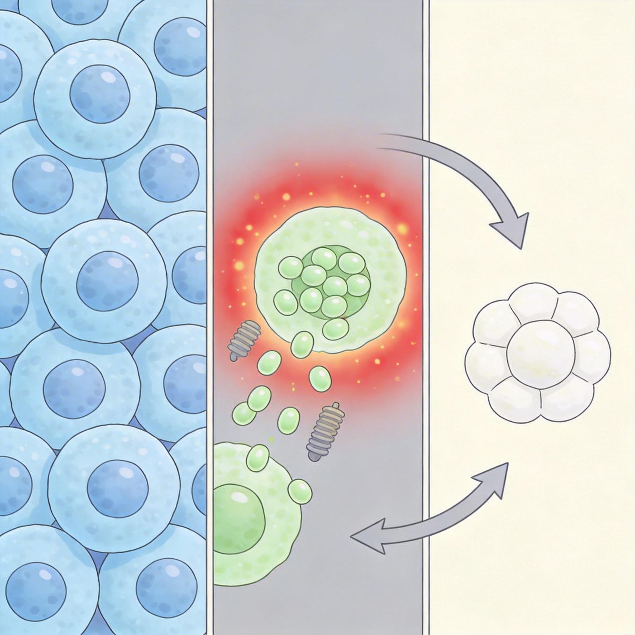 当5.89亿糖尿病患者等待着能替代自身受损胰岛的「救命细胞」时,干细胞来源的类胰岛器官——也就是从干细胞分化来的、模拟真实胰岛功能的细胞团——却卡在了最后一步:移植后超过一半的细胞会在一周内死亡。不是因为免疫排斥,也不是因为细胞没长好,而是因为它们「缺氧窒息」,还不会自己喊「救命」。