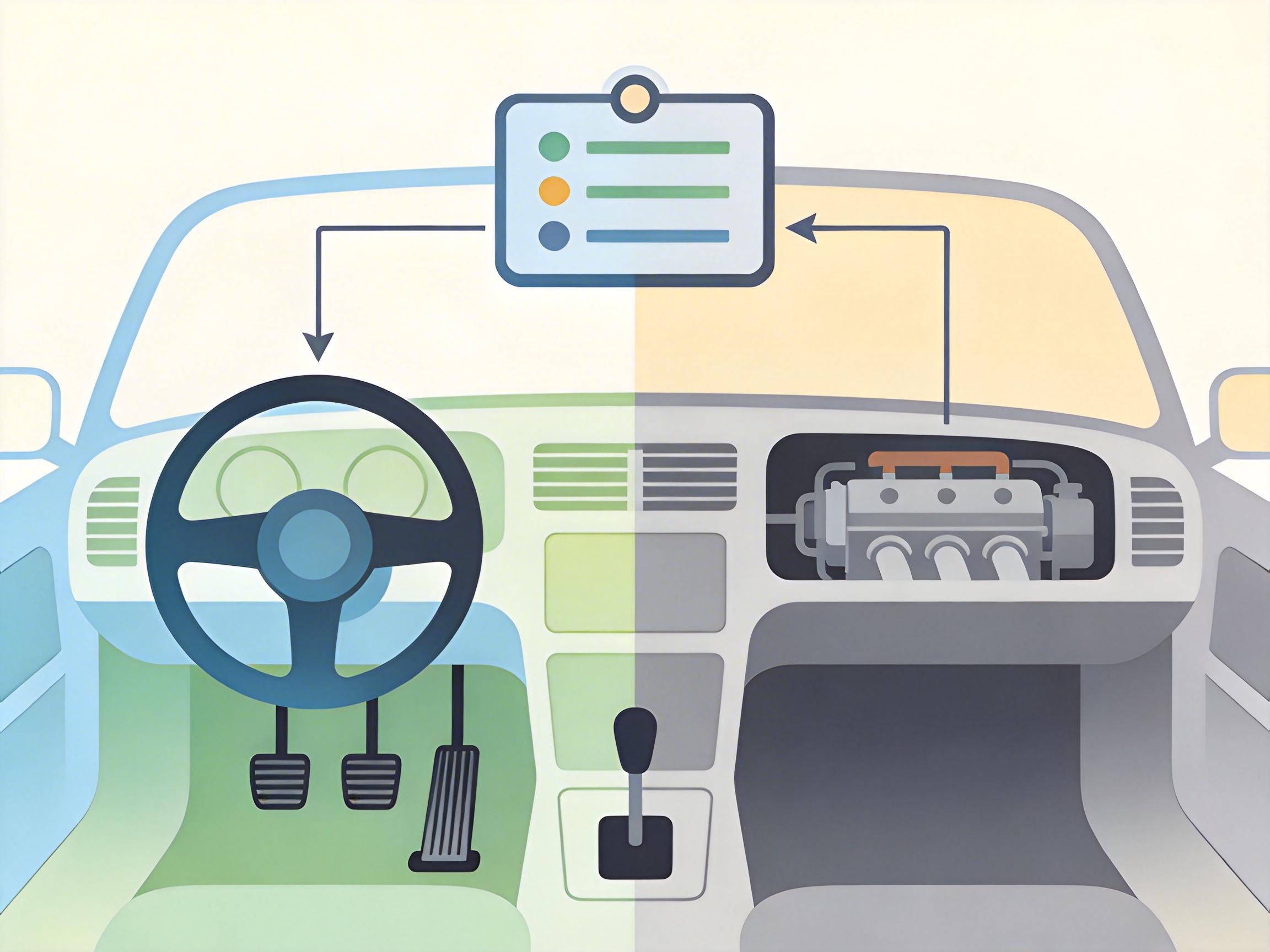 OpenGo的解法是给大模型套上“紧箍咒”——不让它当“工程师”,只让它当“老司机”。你可以把整个系统想象成一辆汽车:经过严格测试的底层技能库是方向盘、油门和刹车,每一个动作(前进、后空翻、跳舞)都被封装成结构化模板,包含唯一ID、可调参数、安全约束、不可变的执行代码,就像汽车的每个操作都有明确的安全边界;而大语言模型只负责根据用户指令和环境,选择踩油门还是转方向盘,绝不允许它去拧发动机的螺丝。