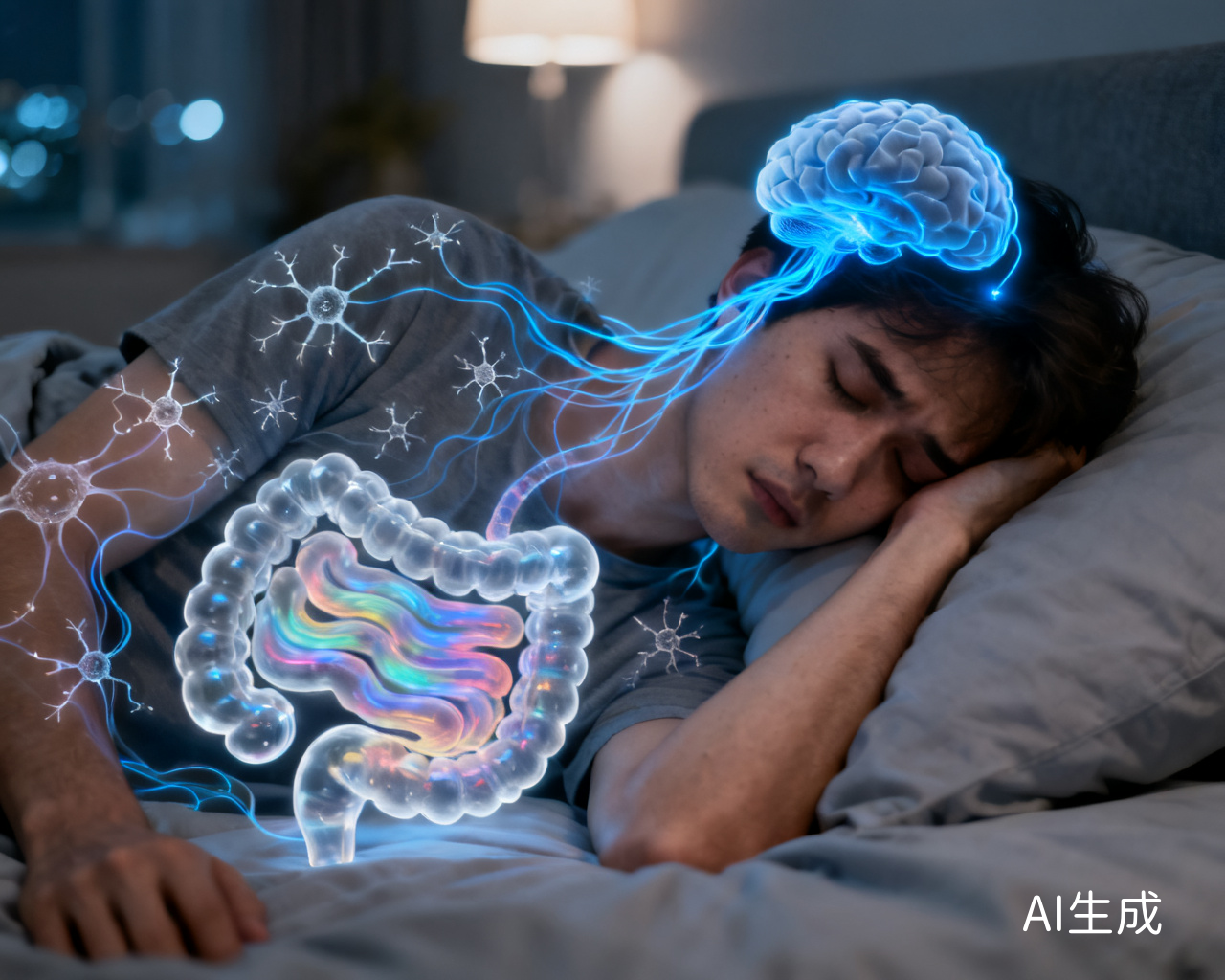 当城市陷入寂静,无数人却在床上辗转反侧。在中国,超过三亿人正被睡眠障碍所困扰。这不仅仅是第二天的疲惫与哈欠,更像一场悄无声息的风暴,正从我们的大脑席卷至身体最深处——肠道。长期以来,我们知道失眠与慢性胃肠疾病相伴相生,但大脑的“指令”究竟如何跨越千山万水,搅乱我们腹中的“第二大脑”,一直是个谜。现在,这层迷雾正被一道科学的闪电划开。