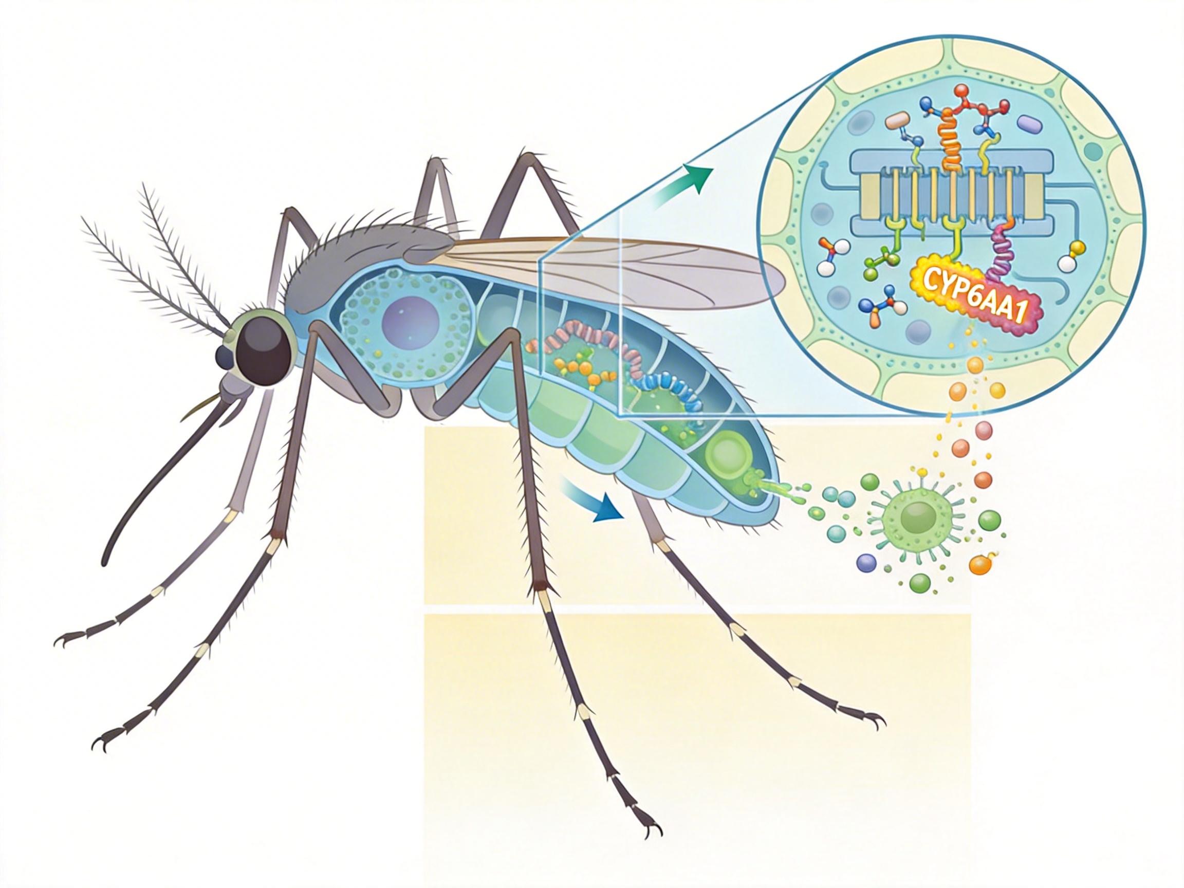 你可以把蚊子的细胞色素P450基因想象成一个“解毒酶工厂”。当杀虫剂进入蚊子体内,这个工厂就开足马力生产酶,把杀虫剂分解成无毒的物质排出体外。研究人员在多个种群里都发现了P450基因的强烈选择信号,尤其是CYP6AA1基因,只要它带上一个特定的突变,蚊子对拟除虫菊酯类杀虫剂的耐受性就会显著提升。