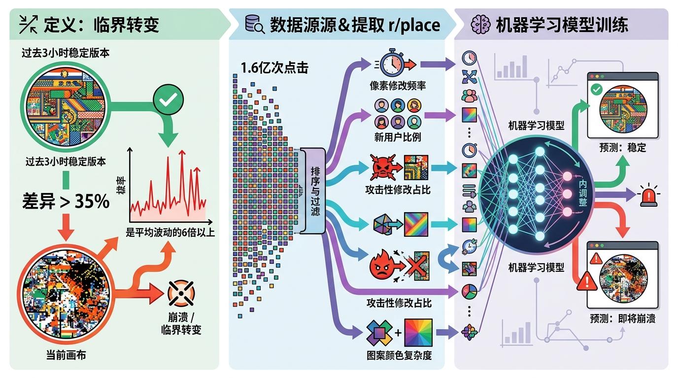 这不是单纯的网络恶作剧,而是千万人参与的社会实验。普林斯顿大学的研究团队从这场像素大战里,挖出了预测复杂系统崩溃的新方法:用可解释机器学习,提前捕捉那些藏在混沌里的崩溃信号。更关键的是,它能说清“为什么会崩溃”——这是传统“黑箱”模型做不到的。