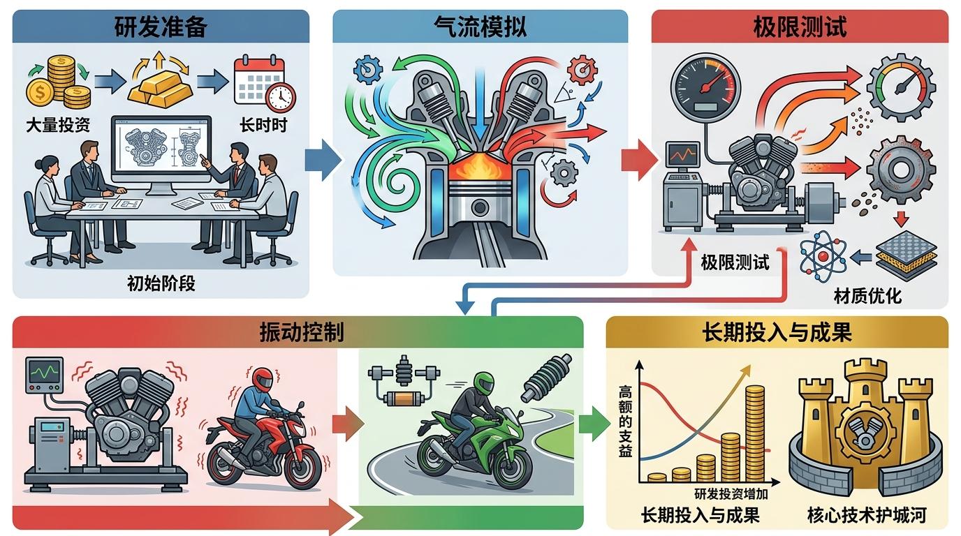 研发这类发动机,从来不是画个图纸就能搞定的事。团队要在实验室里反复模拟缸内气流的走向,调整气门角度让燃油烧得更充分;要在台架上把发动机怼到极限转速,直到零件出现磨损再优化材料;还要解决高转速下的振动问题——毕竟没人想骑着一台“振动按摩椅”去压弯。这也是为什么他们要把近10%的营收砸进研发,哪怕第一年就亏掉两千多万:核心技术的护城河,从来都是用真金白银和时间堆出来的。