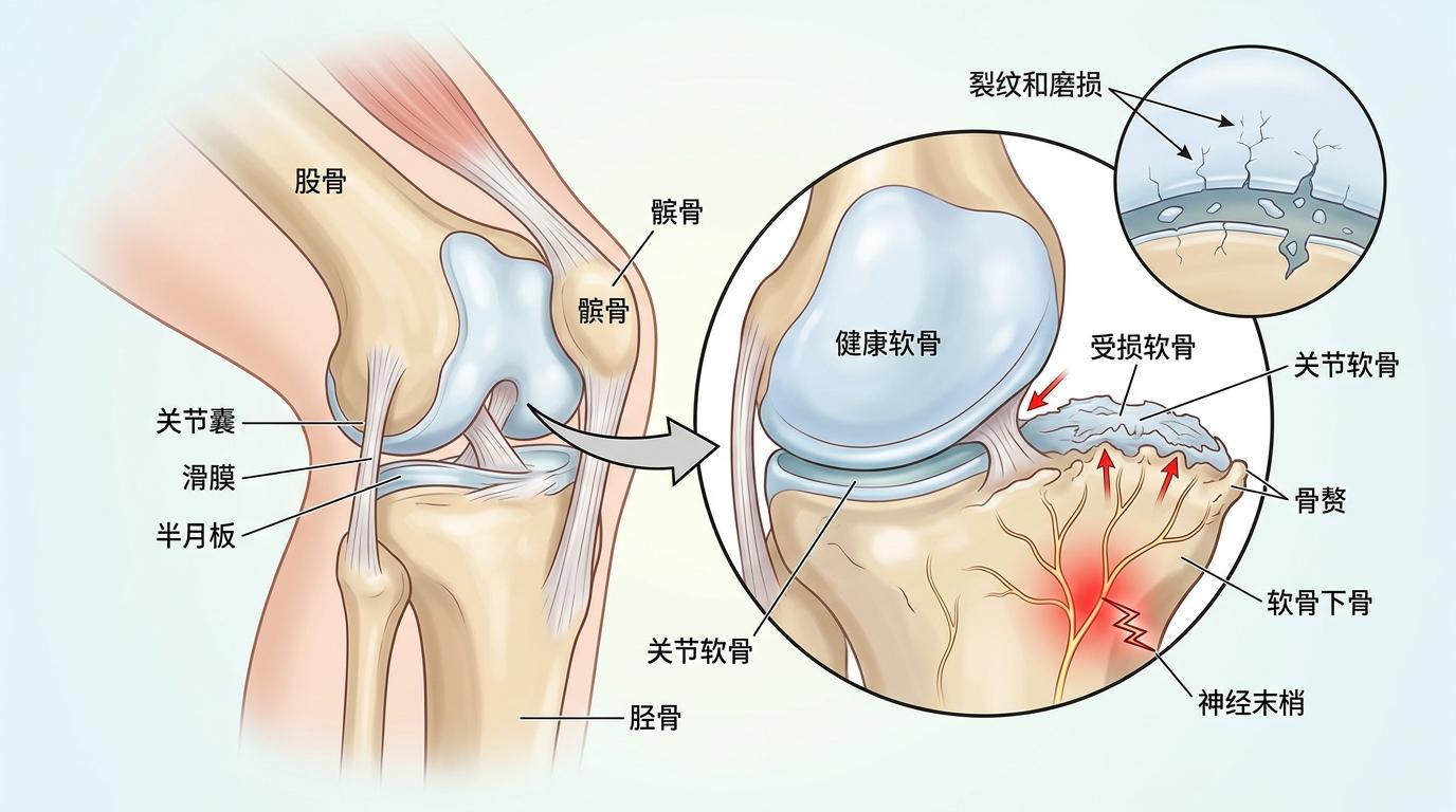 膝盖的预警信号,从来不会说谎。如果晨起膝盖僵硬超过30分钟,上下楼梯时内侧刺痛,走路时关节发出「咔哒」的摩擦声,甚至偶尔「打软腿」,这些都是软骨在求救。别等疼到走不了路才重视,软骨里没有痛觉神经,等你感觉到疼时,损伤往往已经不可逆。
