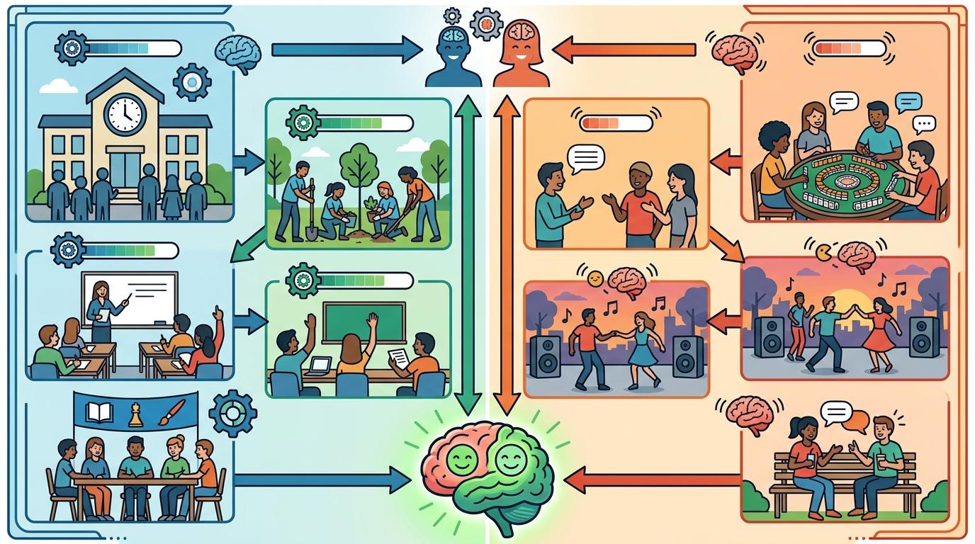 研究者把社交分成了两类:一类是「正式社交」,比如去社区当志愿者、上老年大学、参加俱乐部——这些是有组织、有明确主题的活动,像给大脑报了个「进修班」;另一类是「非正式社交」,比如跟朋友聊天、打麻将、跳广场舞——更像日常的「健脑小游戏」。