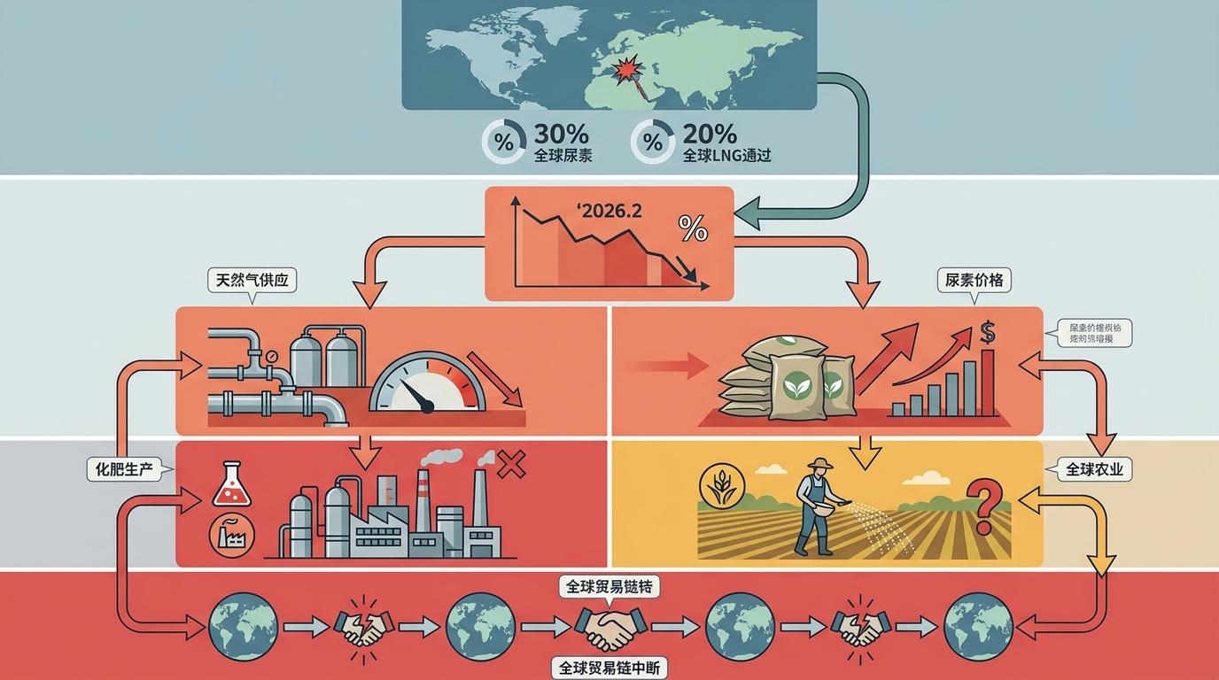 全球30%的海运化肥、20%的液化天然气要从这条狭窄的海峡过,2026年2月的冲突让这里的航运量暴跌95%,尿素价格从400美元/吨直接涨到700美元/吨。氮肥生产的70%成本来自天然气,欧洲的氨厂曾因为天然气价格暴涨直接停产,现在中东的供应一断,全球化肥市场像被抽走了支柱。