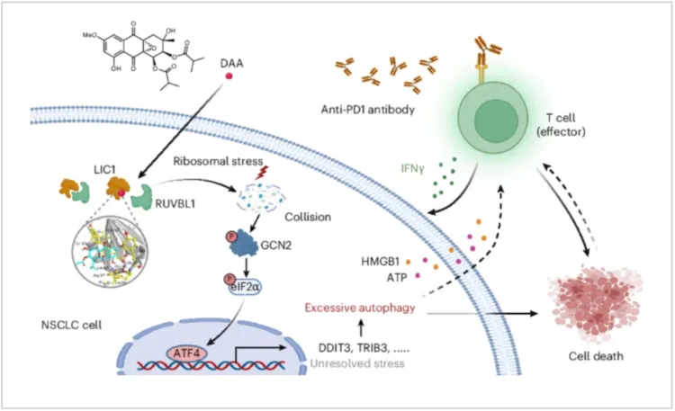 这背后的逻辑堪称完美。DAA诱导的自噬性死亡,会释放出特定的信号分子,相当于癌细胞在临死前发出了“求救信号”。这些信号能被免疫系统识别,从而吸引和激活更多的免疫细胞前来攻击肿瘤。这就像一场协同作战:DAA作为“内应”,在肿瘤堡垒内部制造混乱,瓦解其防御;而PD-1抑制剂则解除了免疫大军的“封印”,让它们得以长驱直入,对削弱的敌人进行致命一击。这种“1+1>2”的协同效应,为克服免疫治疗耐药提供了极具想象力的方案。