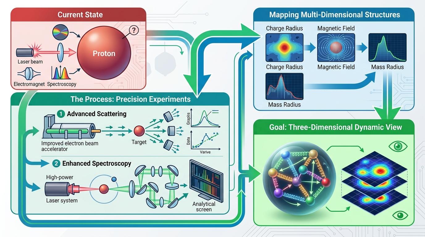 当然,谜团的彻底消散还需要最后一块拼图:目前的实验都集中在质子的电荷半径,而它的磁半径、质量半径等多维结构仍待探索。未来,科学家会用更精密的散射实验和光谱测量,绘制出质子内部夸克与胶子的三维动态图像。