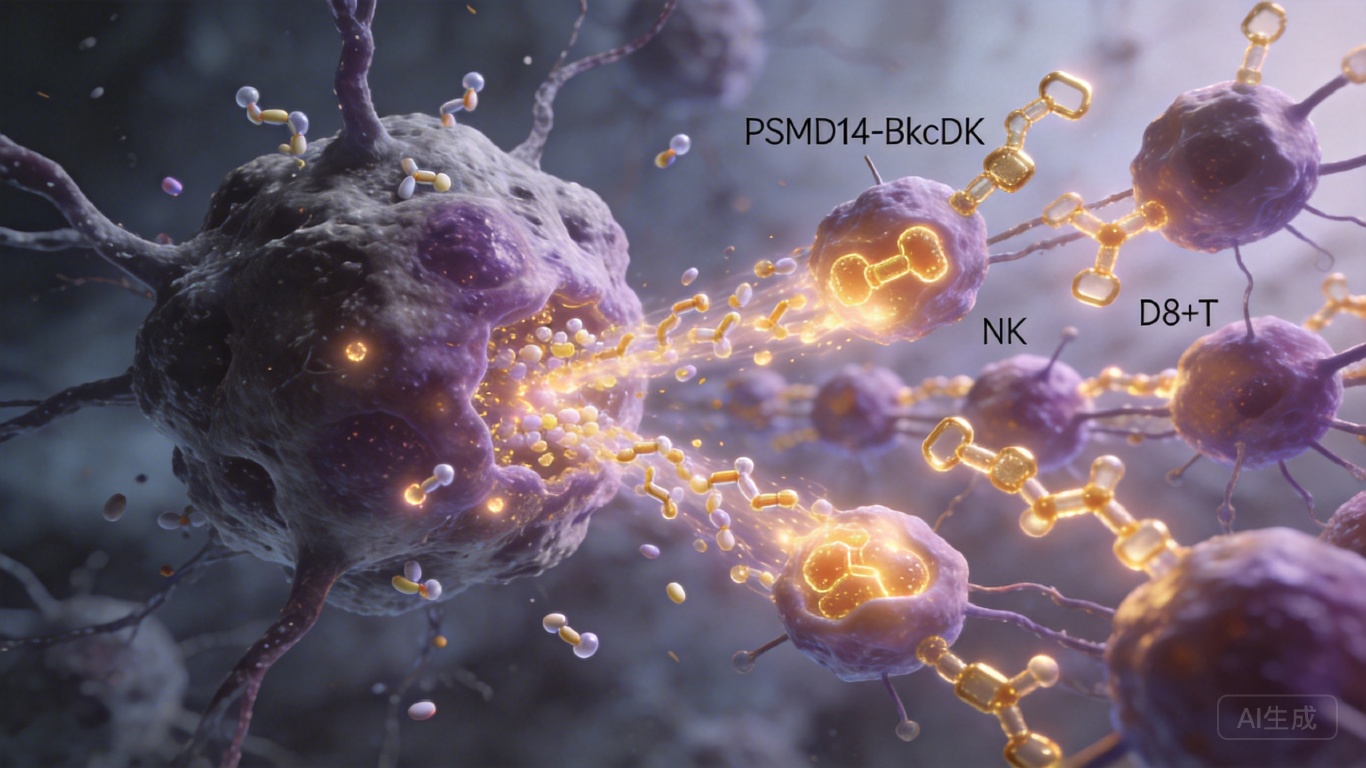 这是一个完美的正反馈循环:PSMD14护着BCKDK,BCKDK催着买转运蛋白,转运蛋白抢来更多BCAA,肿瘤就能越长越大,而周围的免疫细胞只能眼睁睁看着口粮被抢光。