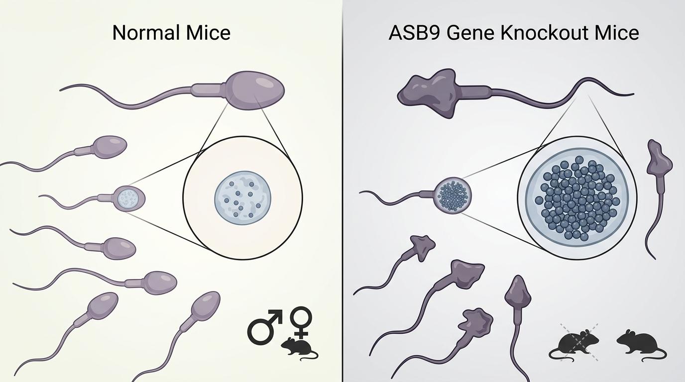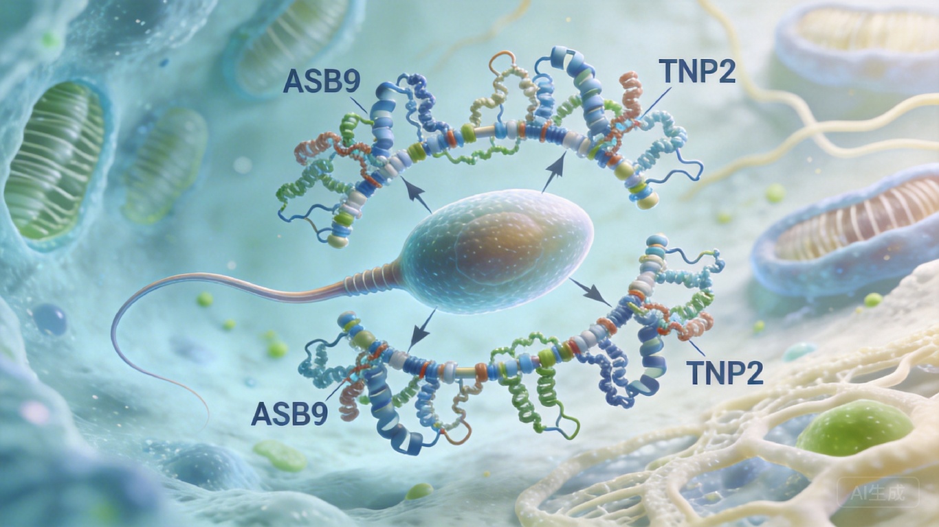 一对夫妻结婚五年未育,丈夫的精液常规检查显示精子数量达标,但近七成精子头部畸形——有的像不规则的梨,有的干脆是圆球状。进一步检测发现,这些畸形精子的细胞核里,本该被清除的过渡蛋白TNP2大量滞留,像没拆干净的脚手架,把精子的“核心骨架”搅得一团糟。医生最终将病因指向一个此前从未被关注过的基因:ASB9。这不是个例,四川大学和南京大学的联合研究团队,在1483名不育男性中找到了4名携带ASB9致病性突变的患者,他们的精子都有着相似的畸形特征。