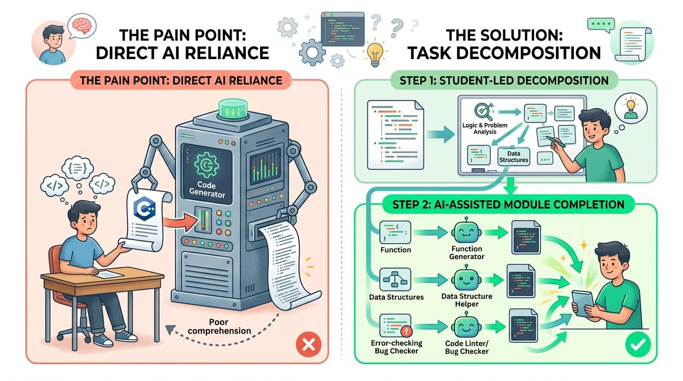 但教育的转型也有痛点。MIT的实验发现,直接依赖AI写代码的学生,对编程逻辑的理解比传统学习的学生差很多。所以现在的教学强调“分解任务”:先让学生自己把问题拆成小模块,再用AI辅助完成每个模块,而不是直接让AI写完整的代码。就像学做饭,得先自己学会配菜、调味,再用料理机帮忙切菜——不能让AI完全代替自己思考。