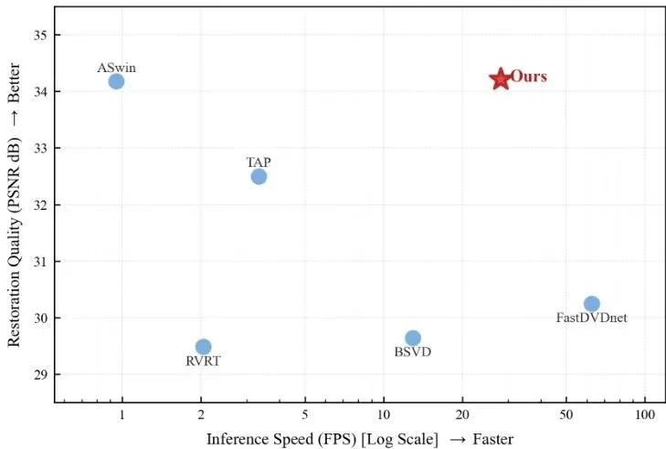 要搞懂这个模型的厉害,得先戳破传统去噪方法的痛点:它们都是“一刀切”。视频去噪的核心是用相邻帧信息补当前帧,但不同区域的需求天差地别——天空这种平滑区域,多帧平均就能把噪点抹干净;但风中的柳枝、人物的发丝,要是敢平均,直接就成模糊的重影。