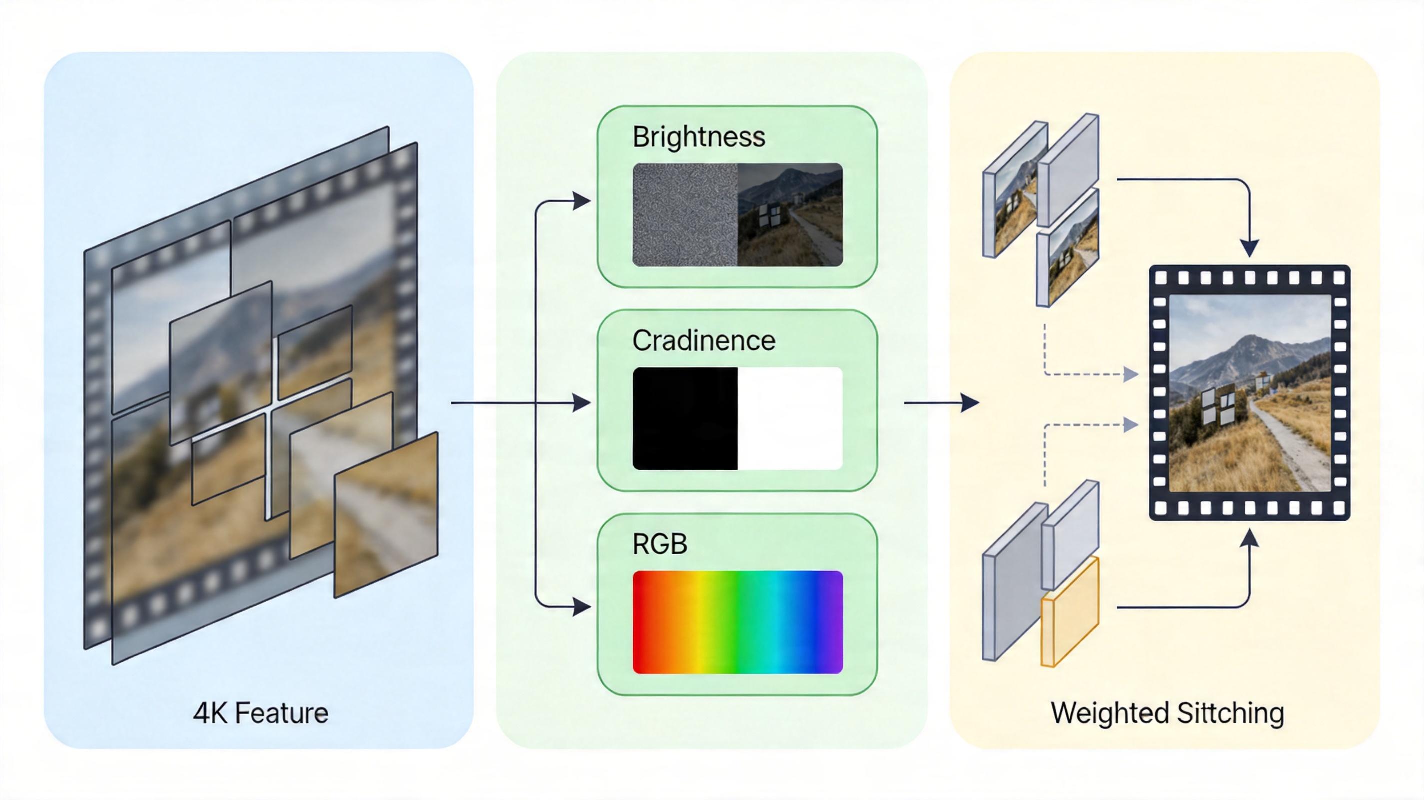 其次是分而治之的工程技巧。4K单帧的特征图太大,GPU显存装不下,模型就把视频切成带重叠的小块,处理完再用加权拼接的方式拼回去,完美避开接缝瑕疵。同时,它还把视频拆成亮度、色度、RGB三个分支分别处理——亮度分支管最影响观感的明暗细节,色度分支管颜色稳定性,RGB分支补全局信息,既分工明确又互不干扰,最后再用结构-色彩协同模块把结果整合,保证画质和色彩都不翻车。
