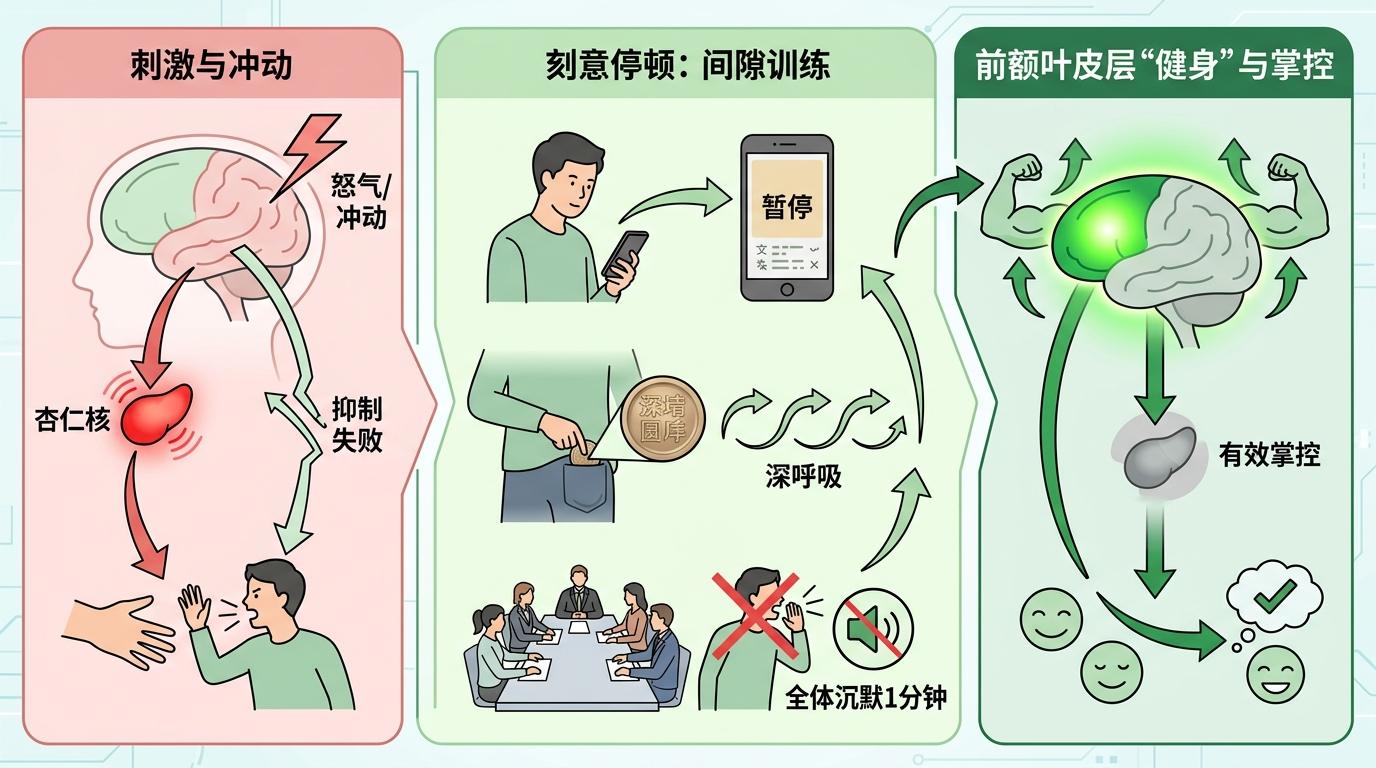 这个间隙不是天生的,是可以练出来的。有人把“暂停”做成手机壁纸,每次想怼人时先看一眼;有人在兜里放个硬币,摸到它就做三次深呼吸;还有的公司规定,开会时有人拍桌子,全员必须沉默一分钟。这些刻意的停顿,本质是在给前额叶皮层“健身”,让它能更快压制杏仁核的冲动。