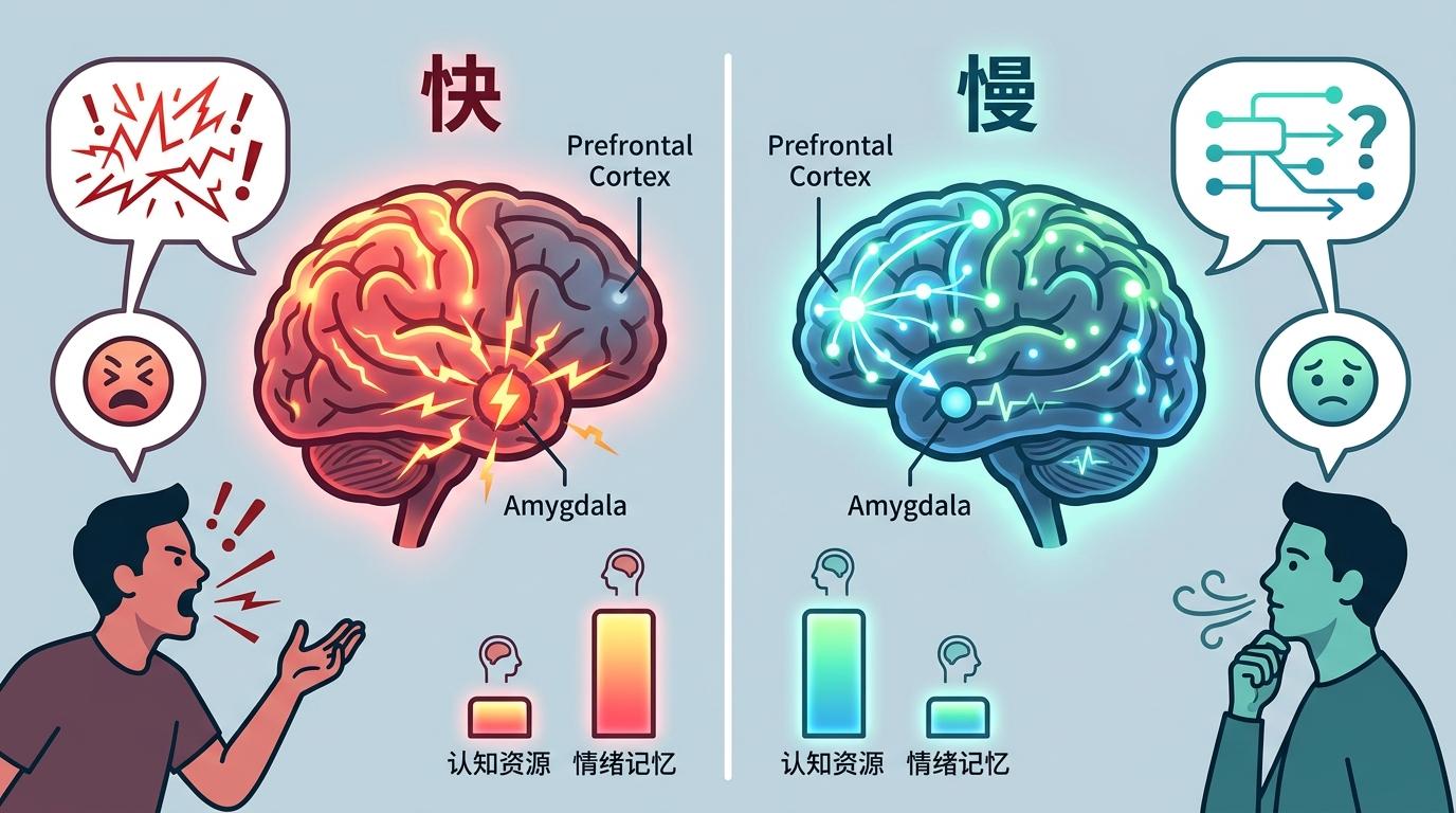 我们总把快和聪明画等号——抢答最快的孩子、开会最先发言的员工、吵架占上风的伴侣,都被默认为更有能力的那一个。但神经成像研究显示,那些急着输出的大脑,前额叶皮层的激活程度远低于慢半拍的人。前者的杏仁核在疯狂放电,靠的是情绪记忆的惯性;后者却在调用认知资源,重新解读眼前的刺激——不是“他在针对我”,而是“他现在压力很大”。