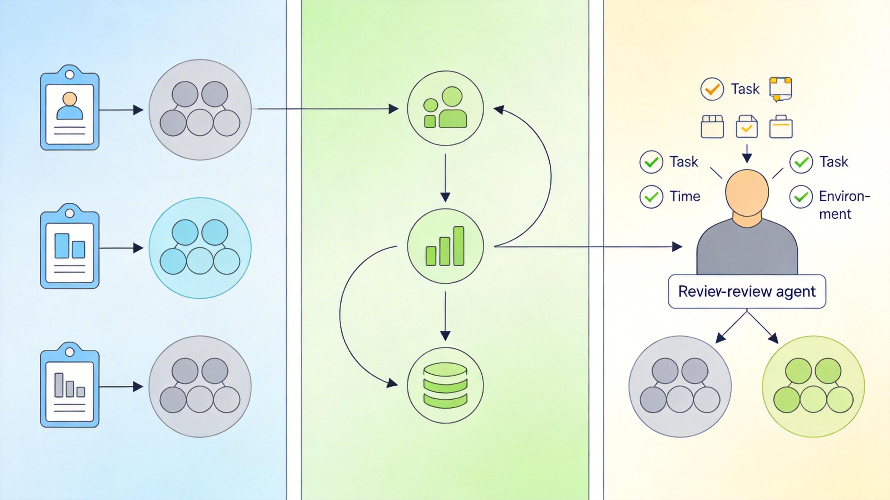 你可以把它想象成一个项目小组:项目经理(主智能体)把大任务拆成小任务,分给不同的组员(子智能体),组员做完后把结果交回来,项目经理再汇总成最终成果。但真实的机制更高效:平台会自动根据任务难度匹配最合适的智能体,还能实现并行处理——比如同时让三个智能体分析不同地区的用户反馈,效率比单个智能体提升数倍。