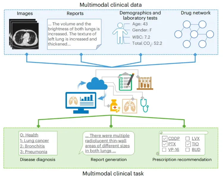 在一位资深呼吸科专家的诊室里,桌上铺开的不是一张CT胶片,而是一个由影像、化验单、病理报告和基因测序数据交织成的复杂信息网络。顶尖医生的诊断艺术,正是在这片多维度的信息海洋中,凭借经验与直觉,将看似无关的“点”连成揭示病魔真相的“线”。这种融合视觉、文本与数据的综合判断能力,曾被认为是人类智慧的专属堡垒。但现在,一扇通往未来的大门正在被悄然推开:我们能教会机器这种“通感”的艺术吗?