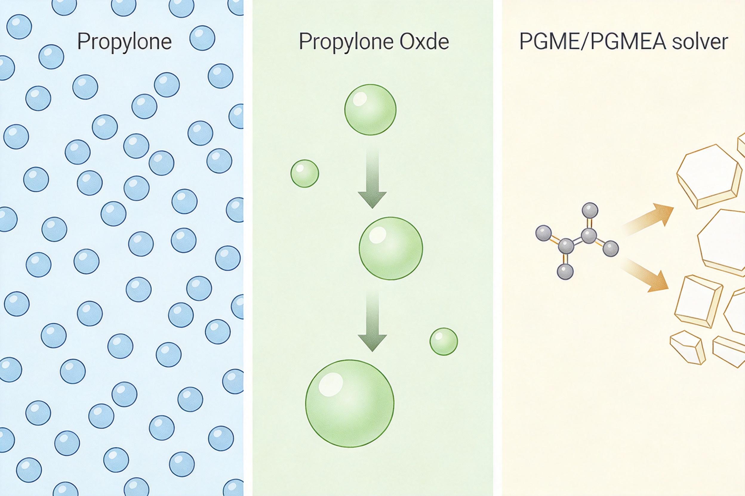 接下来的传导像多米诺骨牌:丙烯少了,用它生产的环氧丙烷就不够;环氧丙烷缺了,以它为原料的PGME和PGMEA溶剂就断了供。而这两种溶剂,是光刻胶、抗反射涂层等芯片制造关键材料的“溶剂骨架”——没有它们,这些材料根本无法成型。