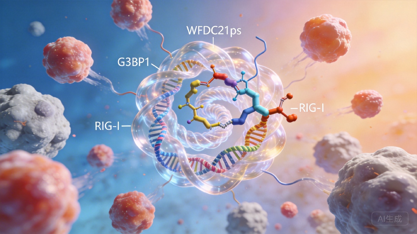 但RIG-I的激活不是单打独斗,它需要一个“助手”——G3BP1蛋白。G3BP1就像个“搭台人”,要把RIG-I和双链RNA凑到一起,才能让警报响得足够大声。而WFDC21P,就是让这个台子搭得更快更稳的“黏合剂”。