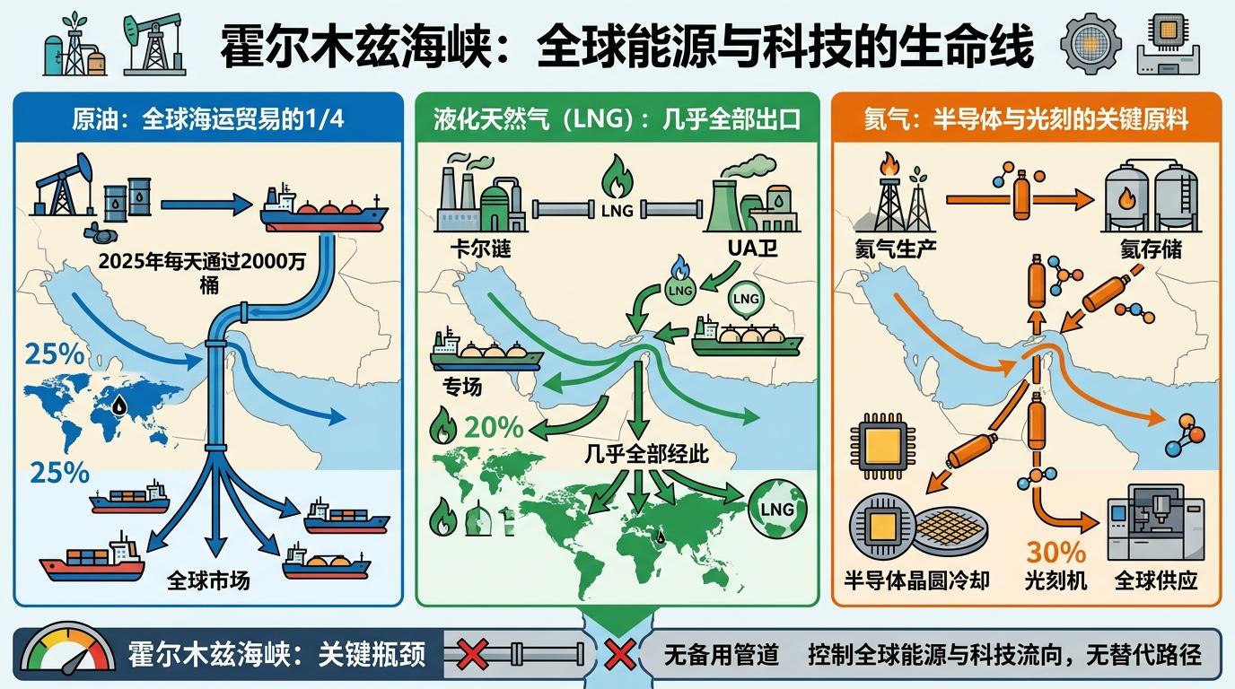 你可以把霍尔木兹海峡想象成家里厨房的主水管阀门——它控制着整个屋子的水流,却没有备用管道。2025年,这里每天要通过2000万桶原油,占全球海运石油贸易的25%;卡塔尔和阿联酋的液化天然气出口几乎全部经此,占全球LNG贸易的20%。更意外的是,全球30%的氦气供应也走这条航道,而氦气是半导体晶圆冷却、光刻机运行的必需原料。