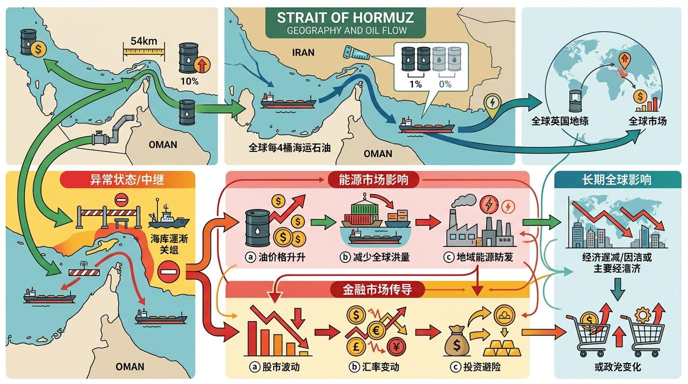 这一切的核心,是那条位于伊朗与阿曼之间、最窄处仅54公里的霍尔木兹海峡——全球每4桶海运石油中,就有1桶要从这里经过。它的开关,为什么能撬动从能源到股市、汇率的所有市场?这背后藏着一套普通人看不见的“能源-金融传导链”。