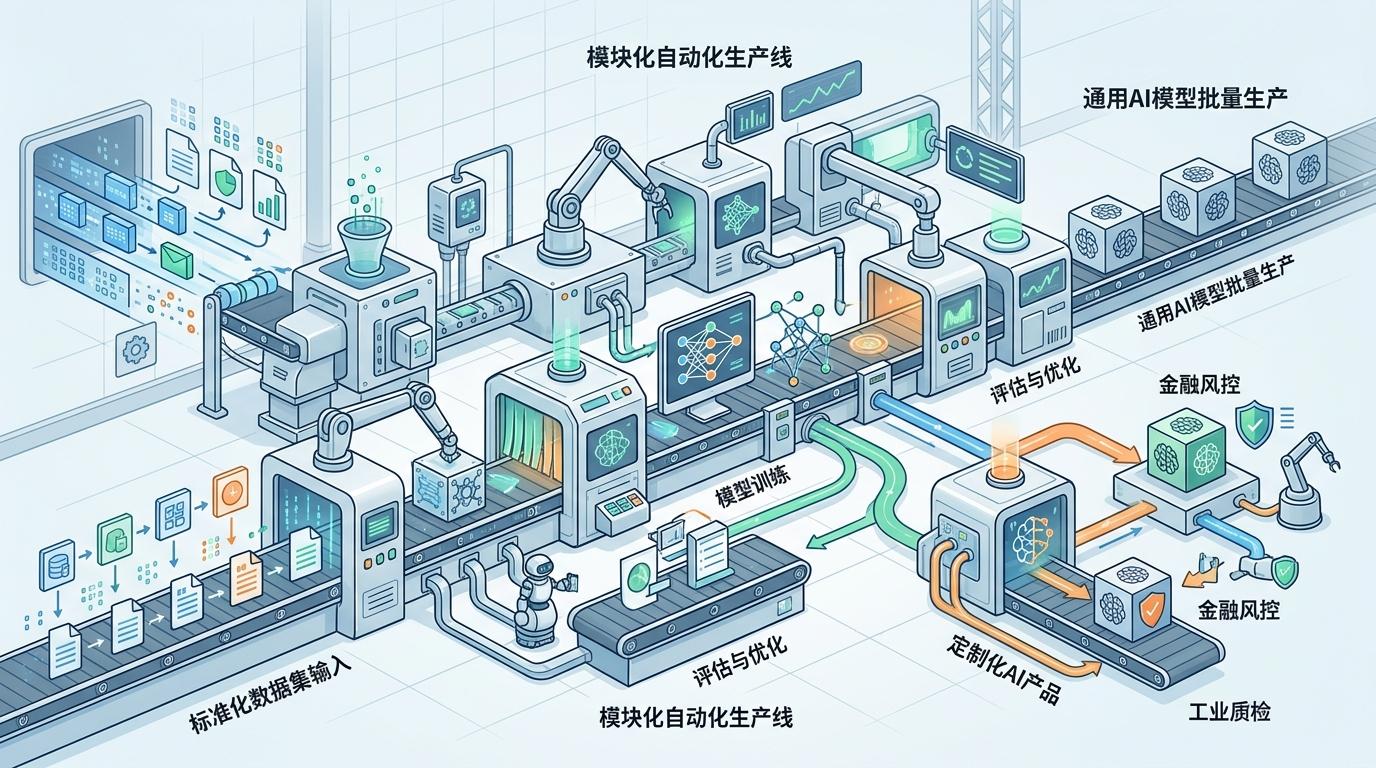 你可以把AI工厂想象成一条智能家电生产线——原料是标准化的数据集,生产线是模块化的自动化工具,产品是能快速适配不同场景的AI模型。和传统流水线不同的是,它还得是“柔性制造”:既能批量生产通用模型,又能随时切换模具,为金融风控、工业质检等特殊需求定制产品。