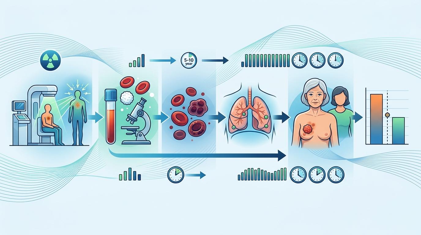 放疗诱发的二次癌有自己的“时间表”:血液系统肿瘤通常在5-10年内出现,实体肿瘤则可能潜伏10年甚至60年。加拿大的研究里,接受过胸部放疗的霍奇金淋巴瘤幸存者,后续患乳腺癌的风险比普通人高得多,而且发病年龄比一般女性提前了14年。