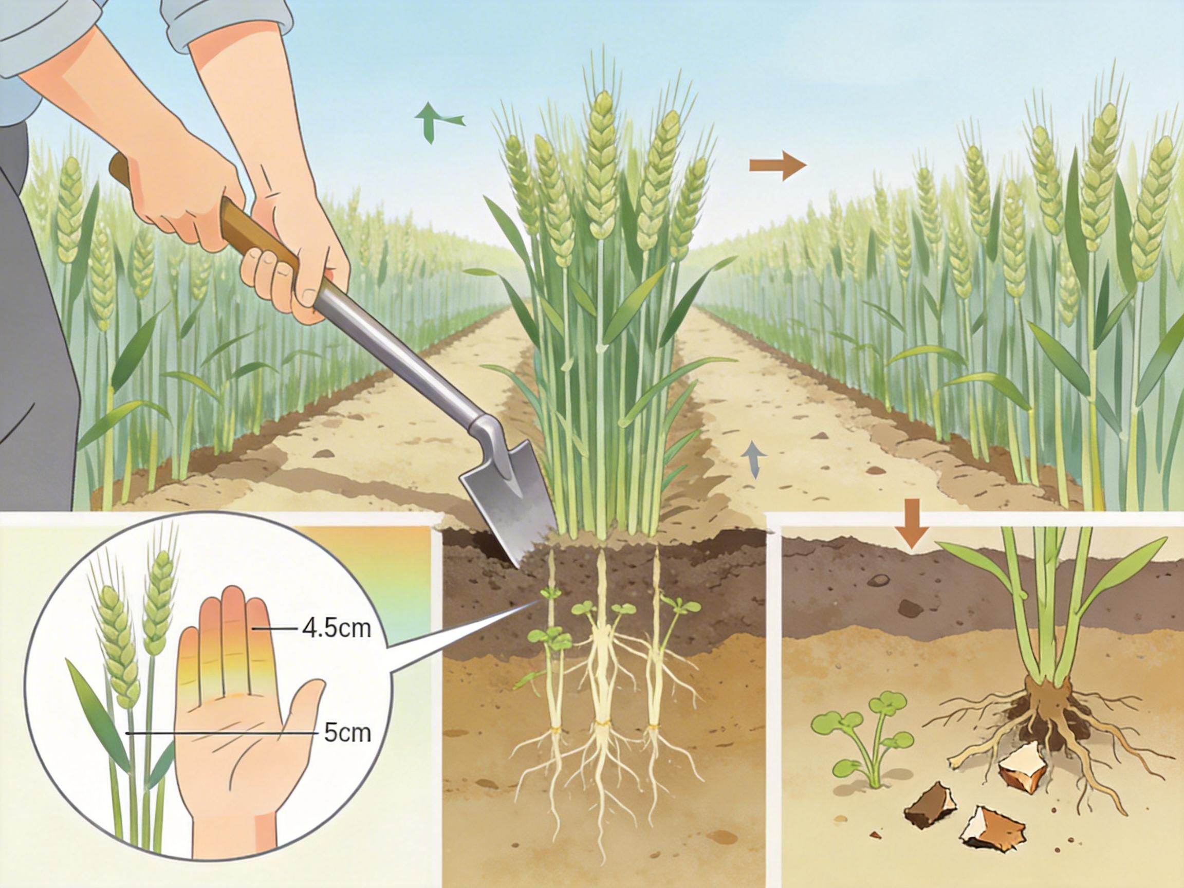 人工锄草的效率,被一套精密又苛刻的动作逻辑死死锁着。麦苗列间距只有手掌宽,锄头必须抬到膝盖高度,用巧劲抡下去,刚好卡在两列苗中间,入土四五厘米——抡太高会伤苗,抡太矮没力道切不断草根。遇到荠菜这类浅根草,还能顺带着切断;要是碰上牛筋草,得反复抡个三五次才能连根刨起。一个熟练的农人,大半天也锄不完一亩地,一家四口六亩小麦,得整整耗上一周。