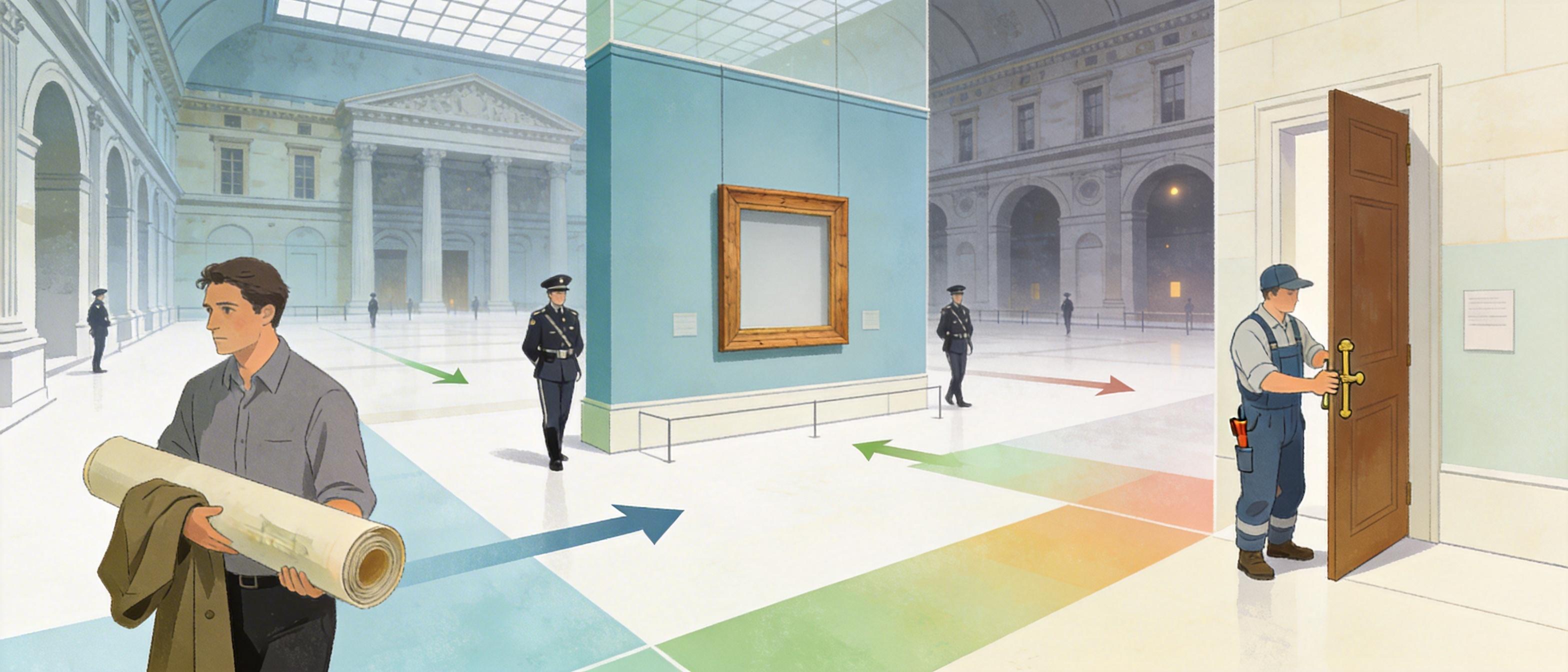 佩鲁贾的作案过程简单得近乎荒诞:他利用曾参与安装画作保护玻璃的经验,拆掉画框后把画布卷进衣服,甚至靠路过水管工的帮忙打开了员工通道的门。而卢浮宫直到失窃28小时后,才因一位静物画家的询问惊觉画作失踪——当时的安保松懈到没有门票、没有报警系统,闭馆日的警卫人数从80人锐减到十余人。这场盗窃像一面照妖镜,照出了全球博物馆安保体系的原始状态:它们更像开放的展厅,而非文化遗产的保险柜。