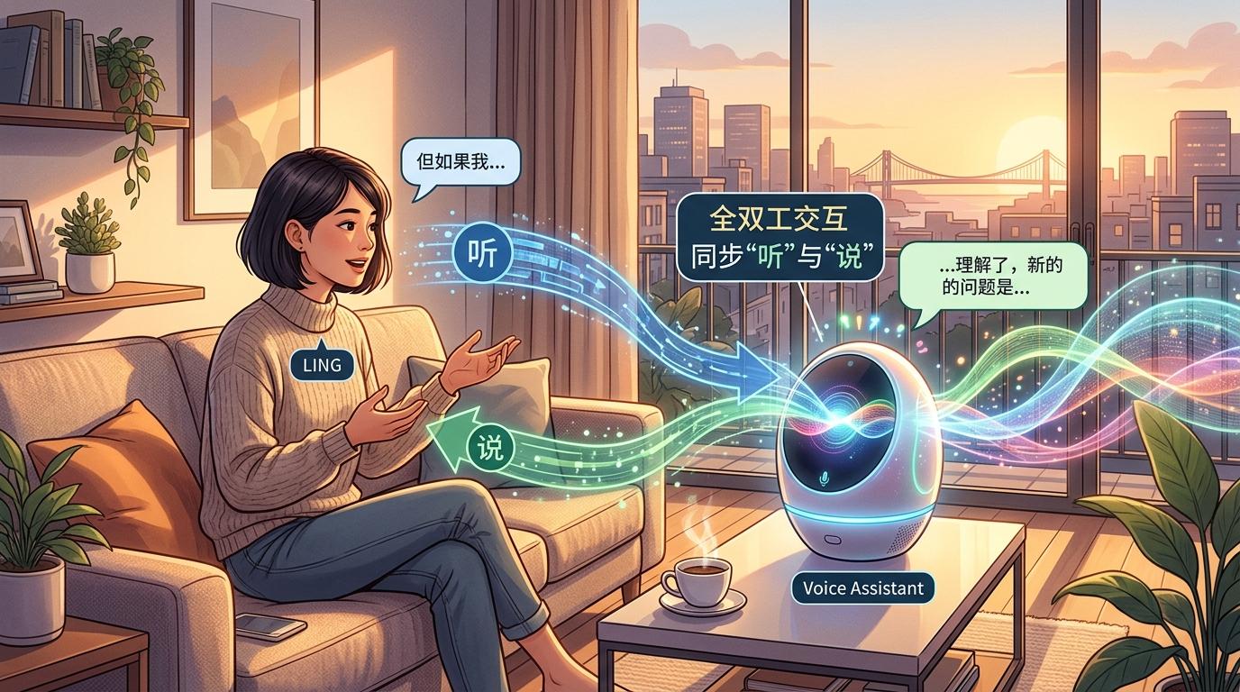 全双工是让对话真正自然的另一把钥匙。以前的语音助手像个守规矩的听众,必须等你说完所有话才敢开口,就像开会时必须举手发言。而全双工模型能同时“听”和“说”:你可以在它解释问题时突然插话提问,它会立刻停下,顺着你的新问题回应;甚至你只是“嗯”了一声表示在听,它也能读懂这个信号,继续流畅地说下去。这种同步交互,才是人类对话的真实状态。
